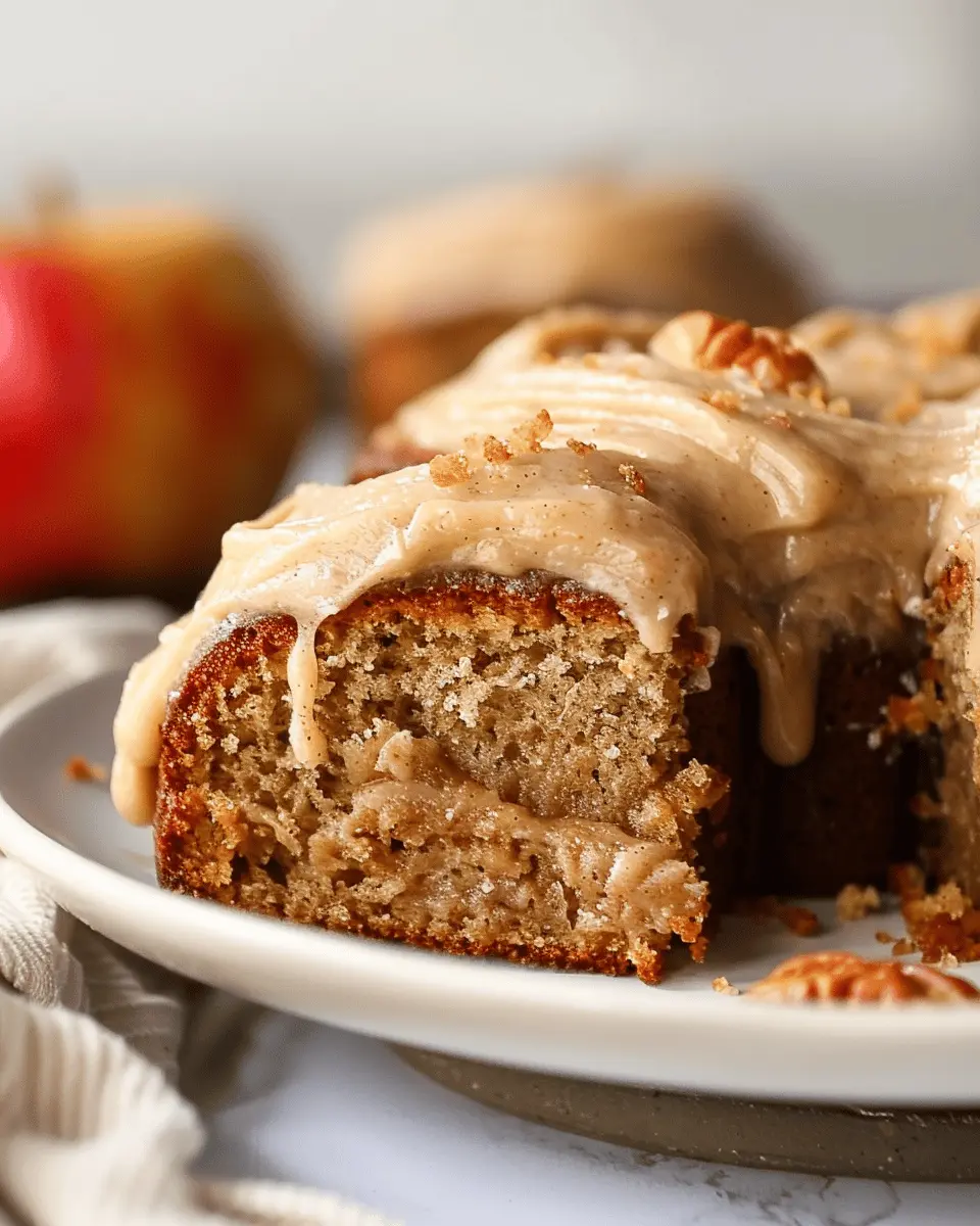 Delight in this rich and flavorful apple spice cake topped with a luscious brown sugar icing.