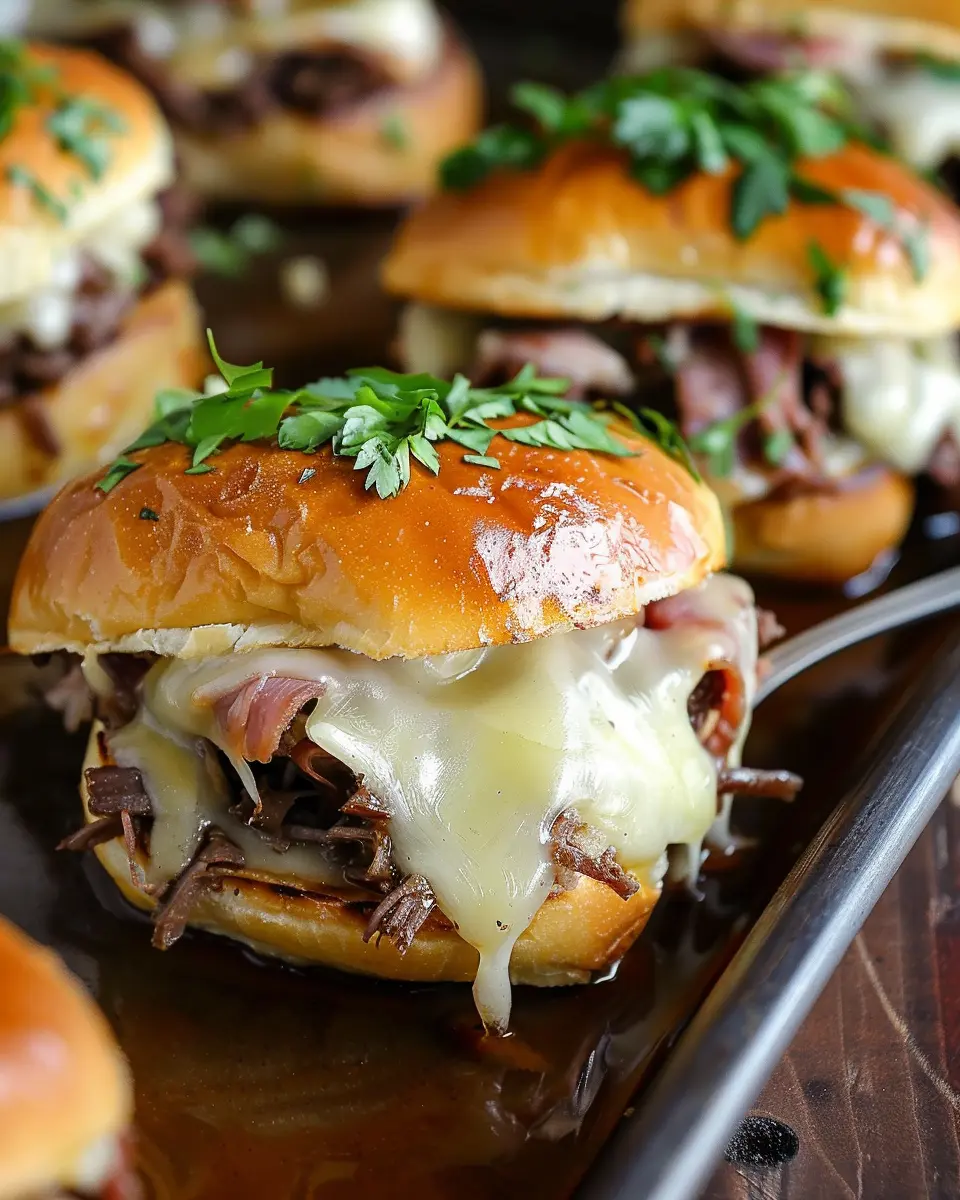 French Dip Sliders: Juicy Turkey Bacon and Beef Delight