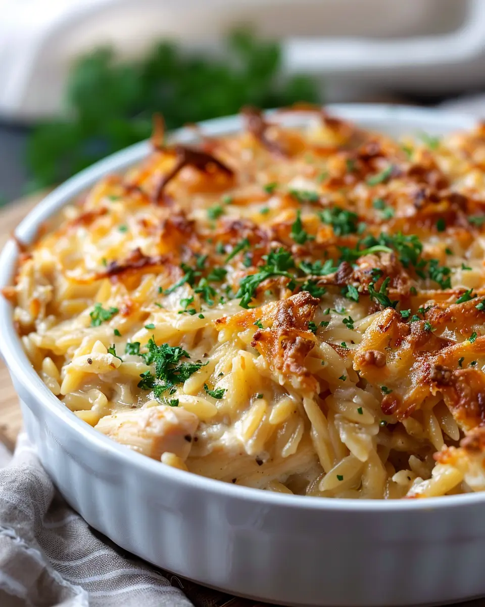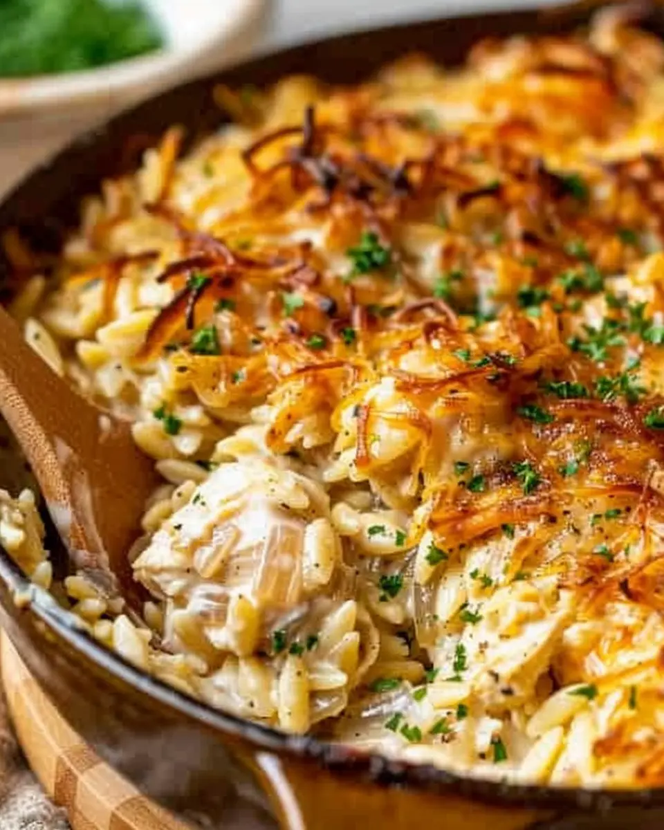 French Onion Chicken Orzo Casserole: Easy Comfort Food Delight