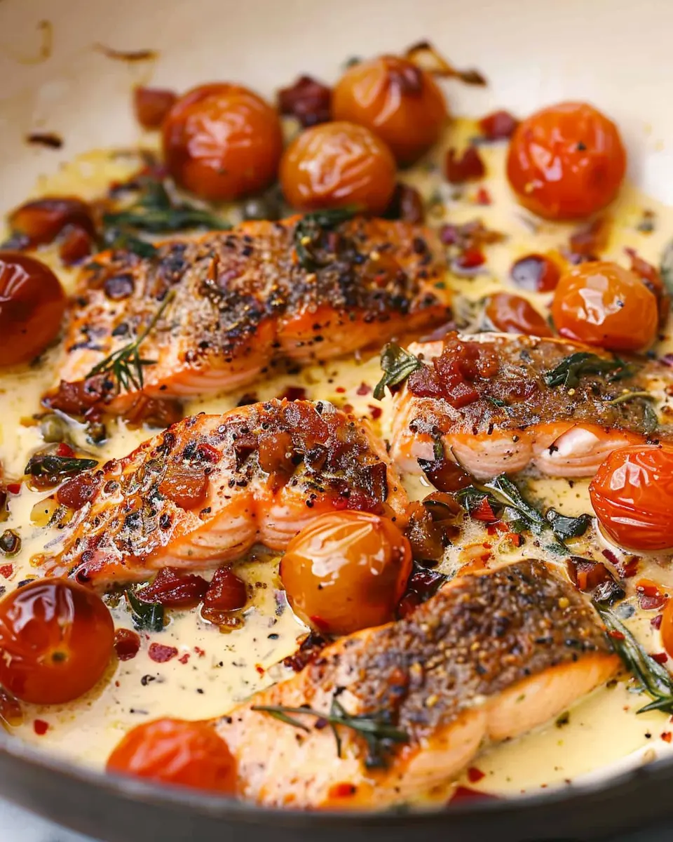 Creamy One-Pan Tuscan Salmon: Easy Dinner with Turkey Bacon Twist