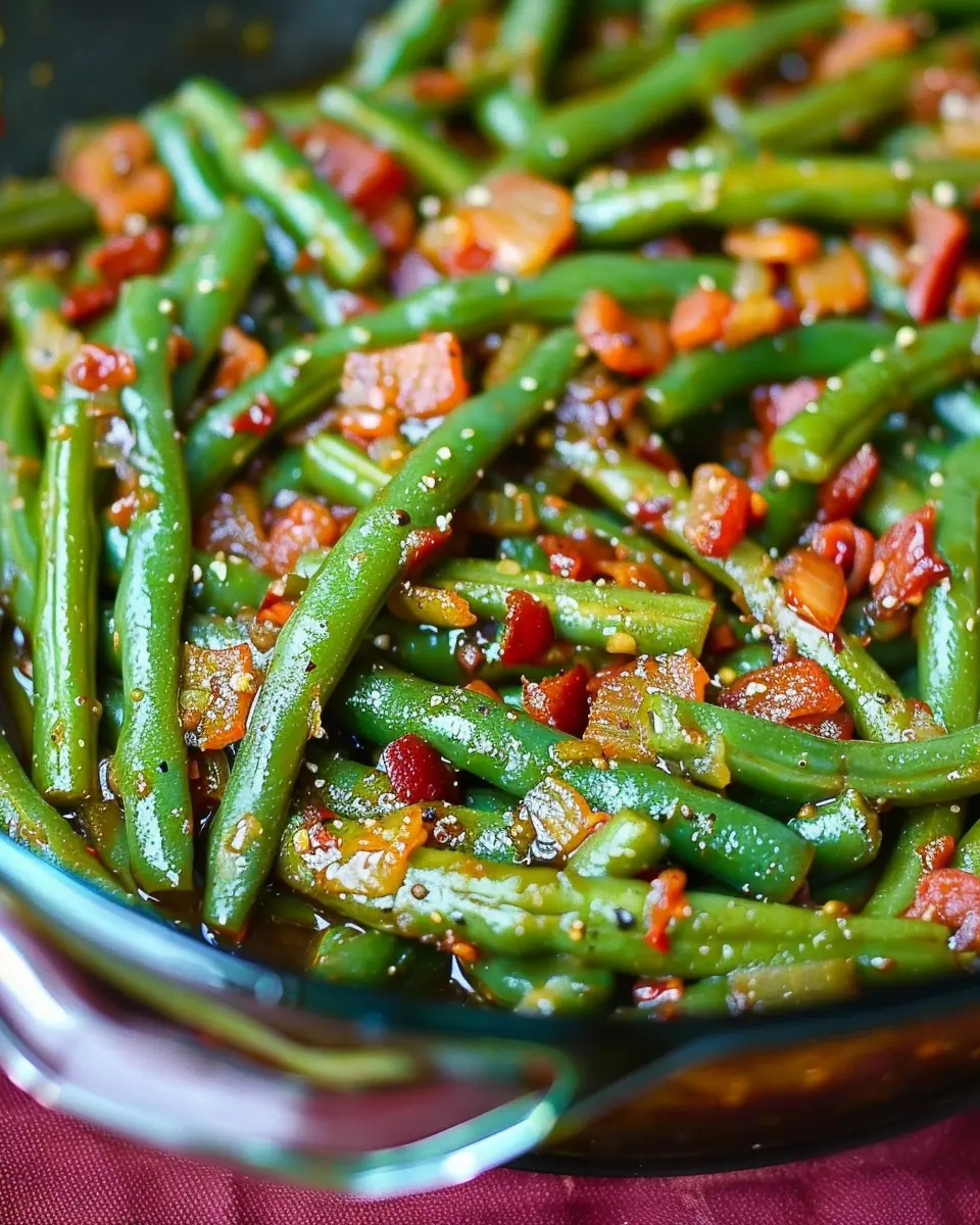 Smothered Green Beans with Turkey Bacon and Chicken Ham Delight