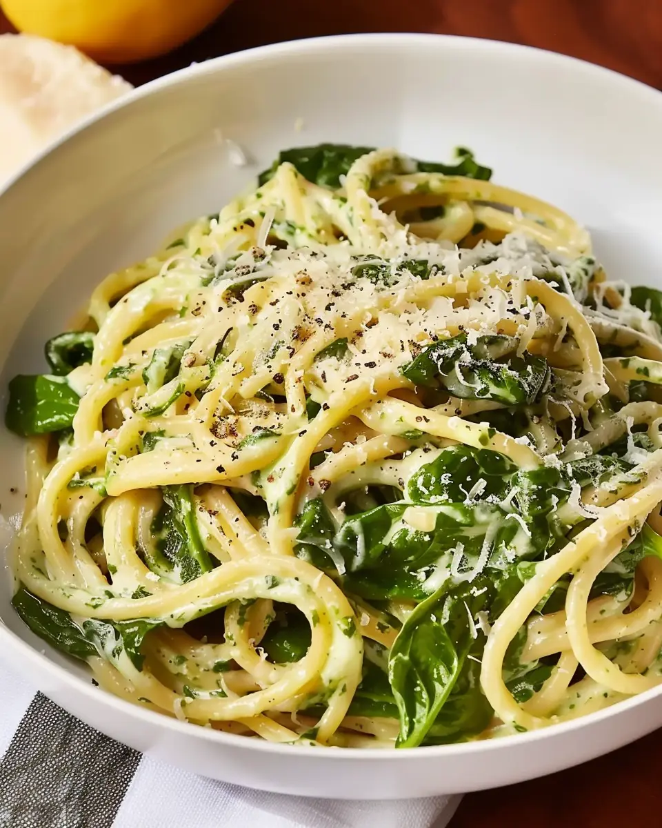 Spaghetti with Creamy Lemon-Spinach Sauce: A Fresh and Easy Delight