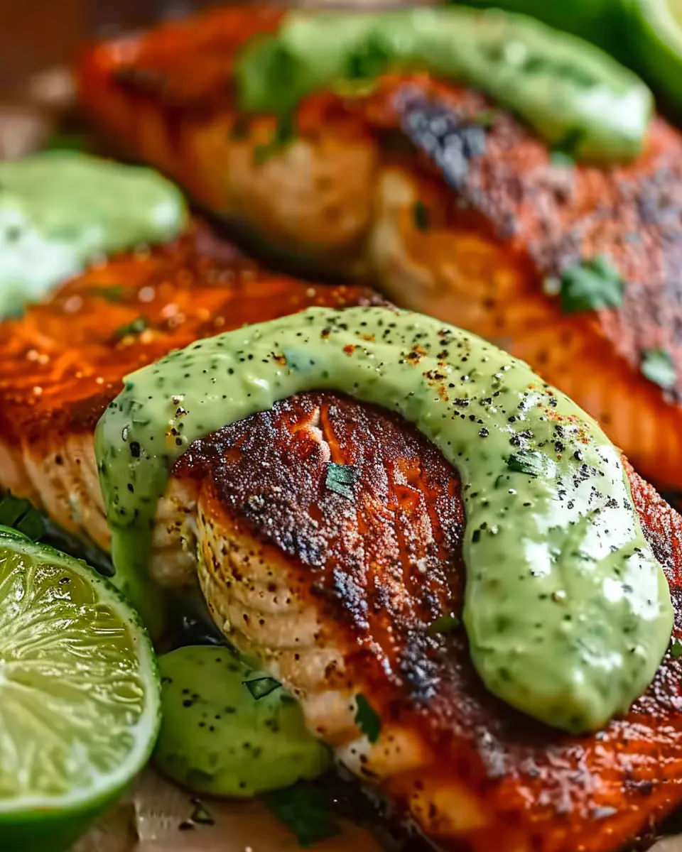 Baked Cajun Salmon with Creamy Avocado Lime Sauce: Easy & Delicious