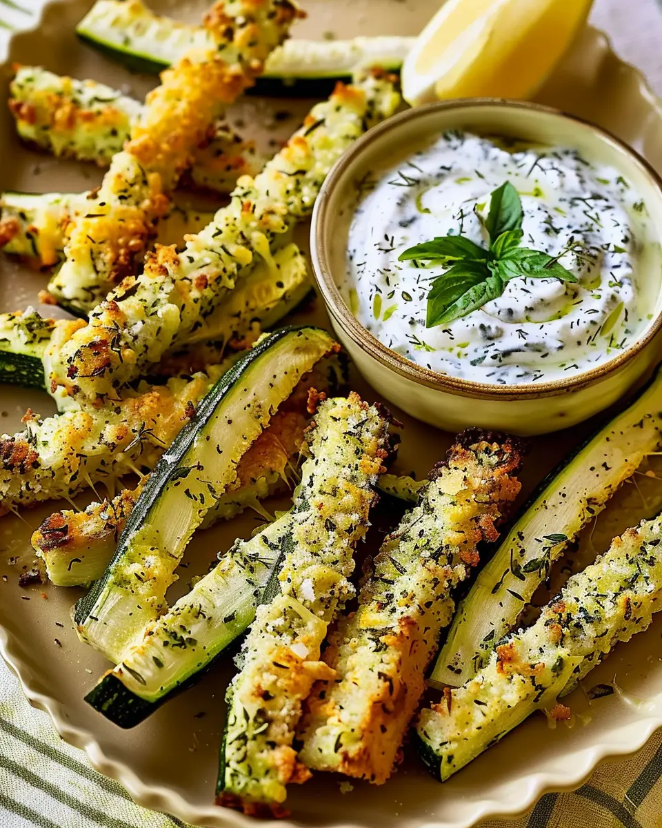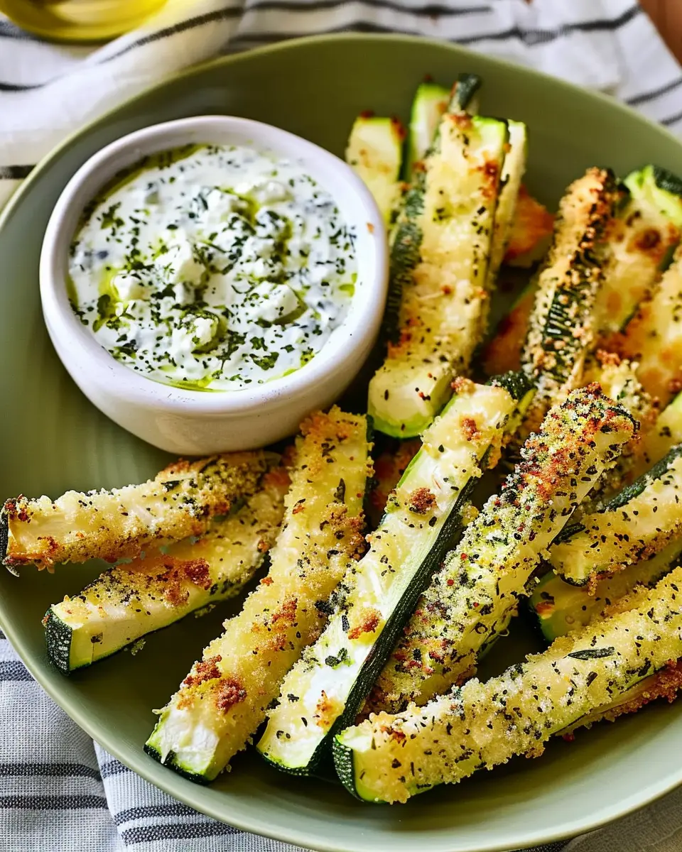 Baked Zucchini Fries pair perfectly with a variety of dishes! You could serve them alongside burgers or grilled chicken for a nice balance of flavors. For a lighter option, try them with a fresh salad. They also make a fantastic appetizer at parties. Want something to dip them in? Consider a creamy ranch dressing, a zesty tomato salsa, or, of course, the herby feta dip from this recipe. Feeling adventurous? Add some roasted garlic or sriracha to elevate the flavor profile!