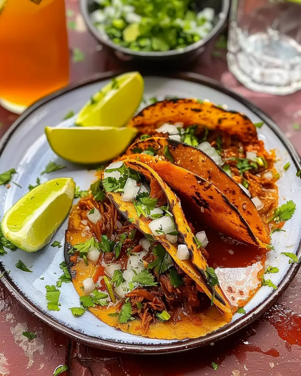 These tacos are not only tasty but also packed with protein! A serving can provide 20-30 grams of protein, thanks to the slow-cooked beef, which is essential for muscle repair and overall health.