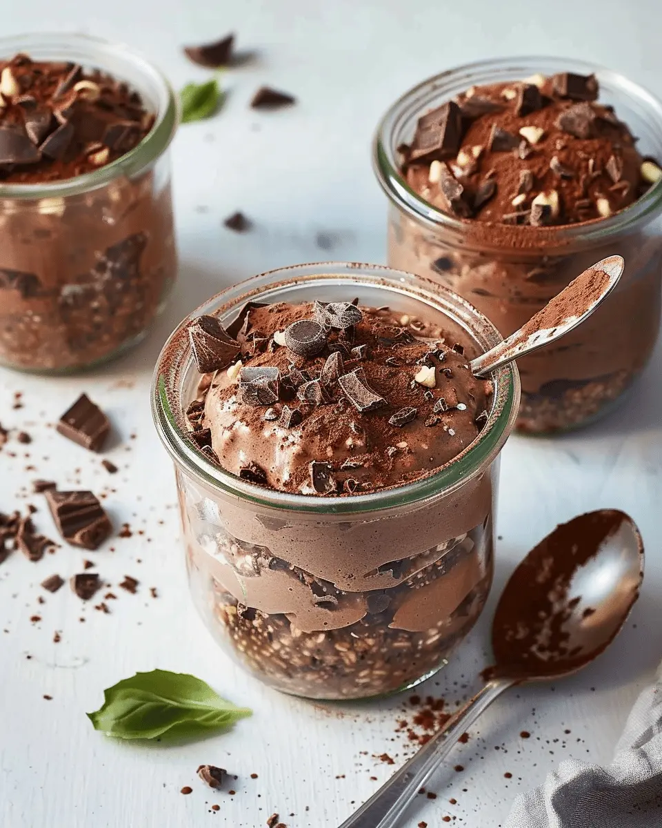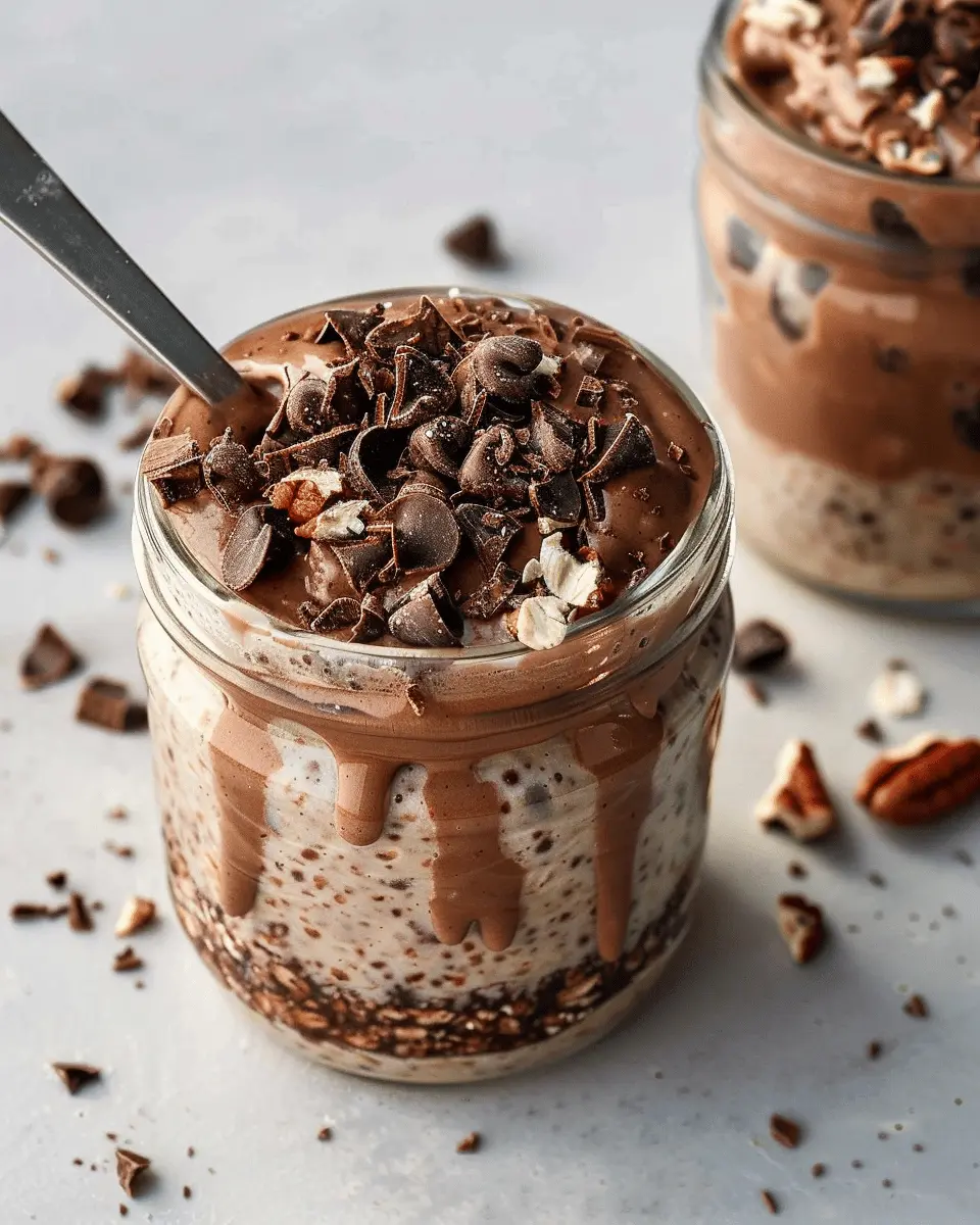 It’s time to let your creation rest and develop those flavors. Transfer the mixture into a jar or an airtight container, sealing it tightly. Place it in the refrigerator overnight; this allows the oats to soften and absorb that lush chocolate goodness.