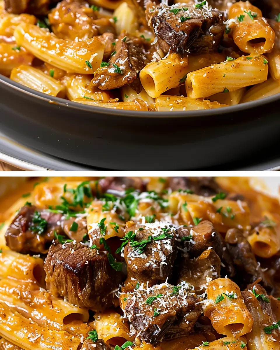 But the beauty of this dish doesn’t stop there. Pairing these flavorful steak tips with rigatoni pasta drenched in a creamy Parmesan sauce creates a comforting and satisfying meal that rivals even your favorite Italian restaurant. It’s a delightful fusion of textures and flavors that’s sure to please everyone at the table.