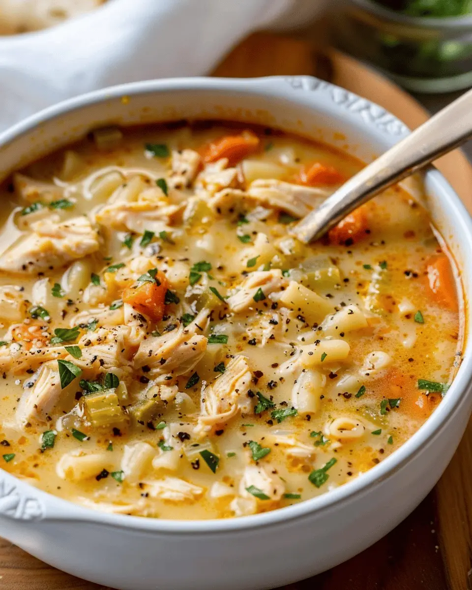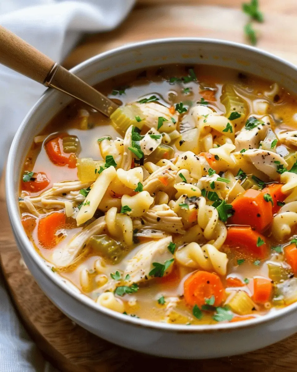 Reduce the heat and allow the soup to simmer for about 20–25 minutes. This slow cooking process ensures that the chicken becomes tender and absorbs all those incredible flavors from the broth and vegetables. Take a little time to enjoy the aromatic scents filling your kitchen — it surely creates a warm and inviting atmosphere.