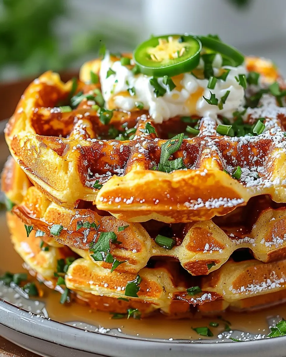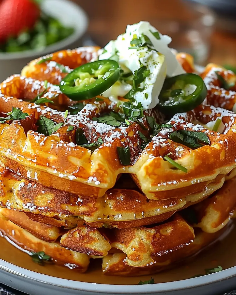 For a delightful twist, transform your savory waffles into something sweet! Simply reduce the amount of jalapeños and add honey or maple syrup to the batter. Incorporating corn kernels can enhance that rustic, sweet flavor profile. Serve these sweet cornbread waffles with fresh fruit, a dollop of whipped cream, or even a drizzle of your favorite syrup for a brunch that feels indulgent yet playful.