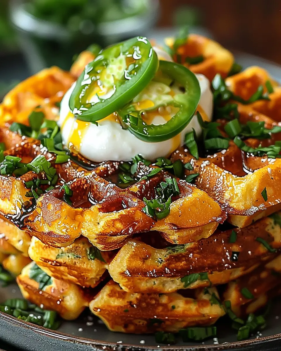 These waffles are not just tasty—they can be a nourishing addition to your meals! Incorporate them into your breakfast or brunch rotation and enjoy the blend of cheddar and jalapeño that makes this dish stand out.