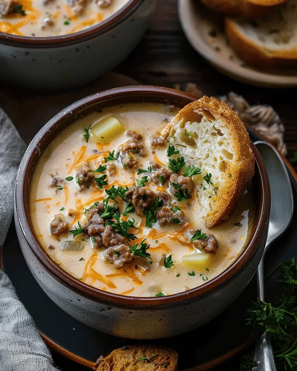 This step-by-step guide leaves you with a cheesy beef and potato soup that’s perfect for cozy nights or gatherings with friends. Pair it with some crusty bread or a fresh green salad, and you’ve got a meal that’s sure to impress!