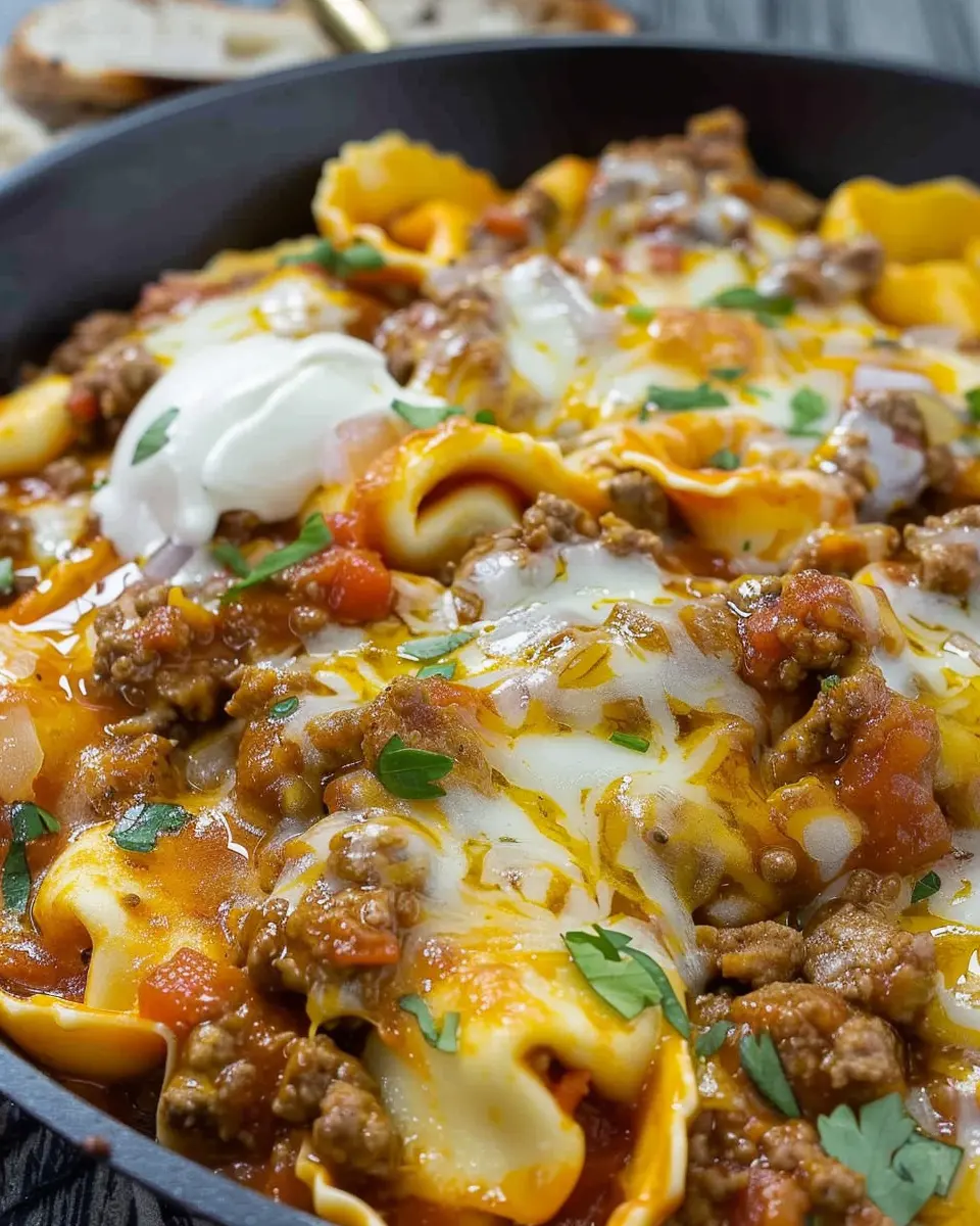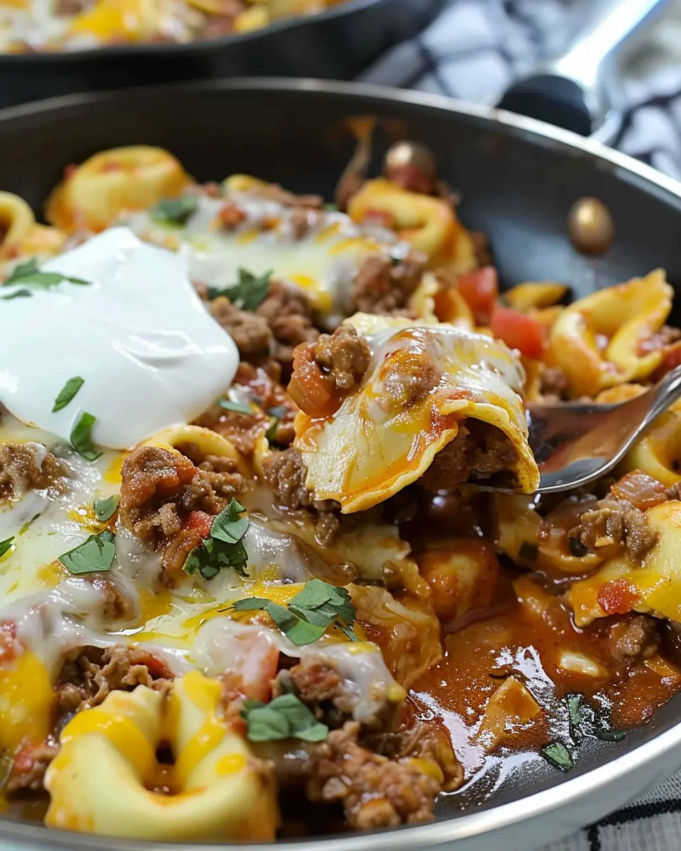 PrintCheesy Beef Enchilada Tortellini: Easy Comfort Food Delight