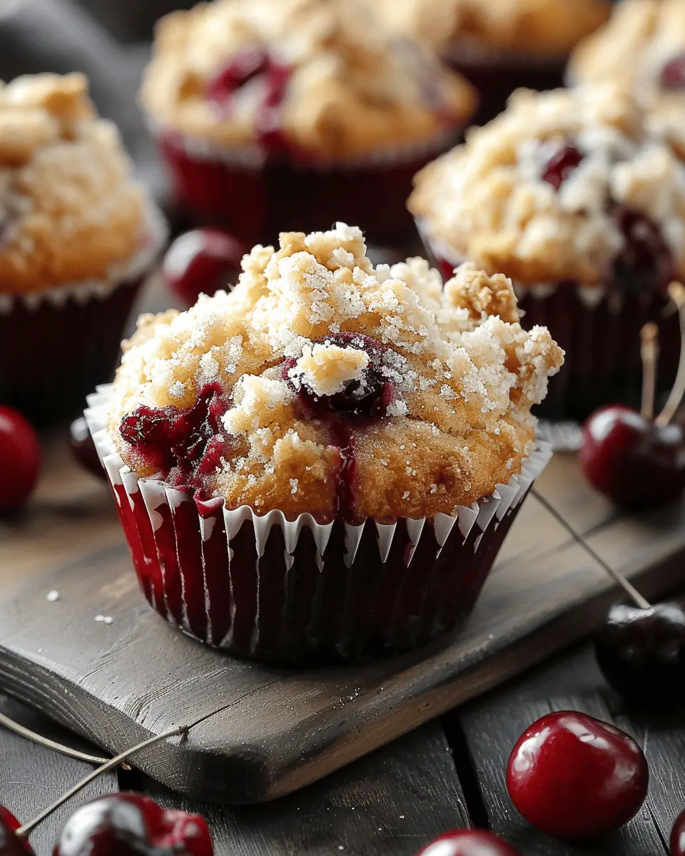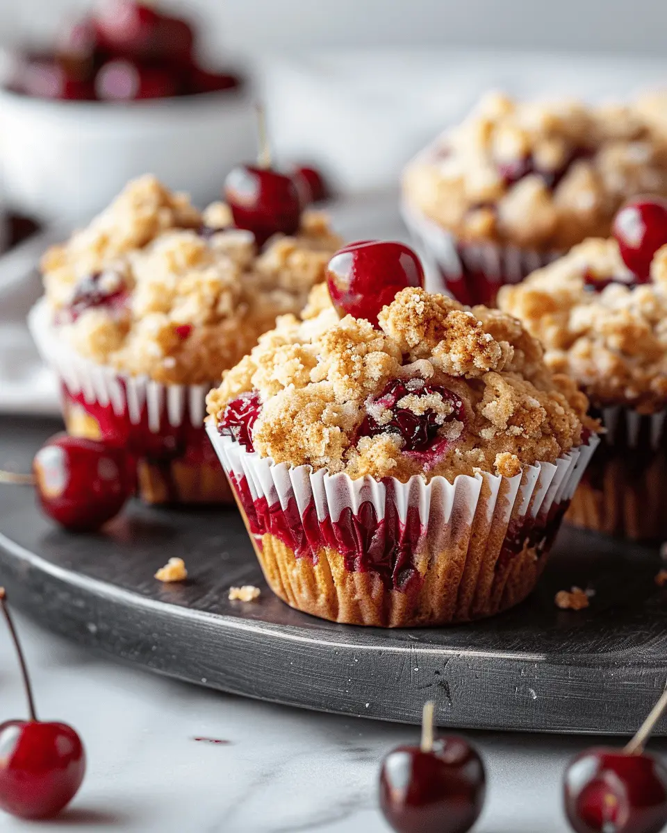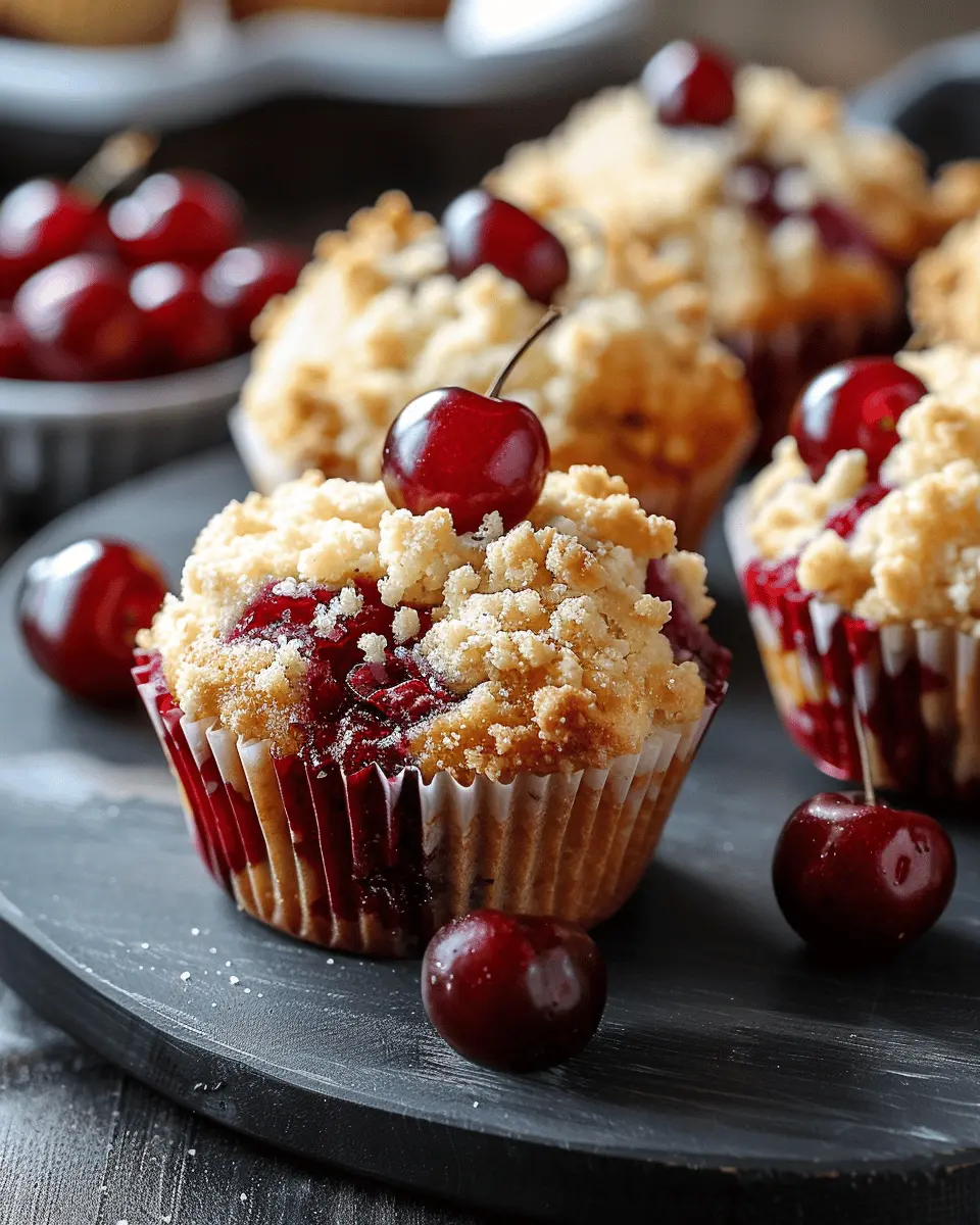 Delight in these easy cherry cobbler muffins that combine the sweetness of cherries with the comforting texture of muffins.