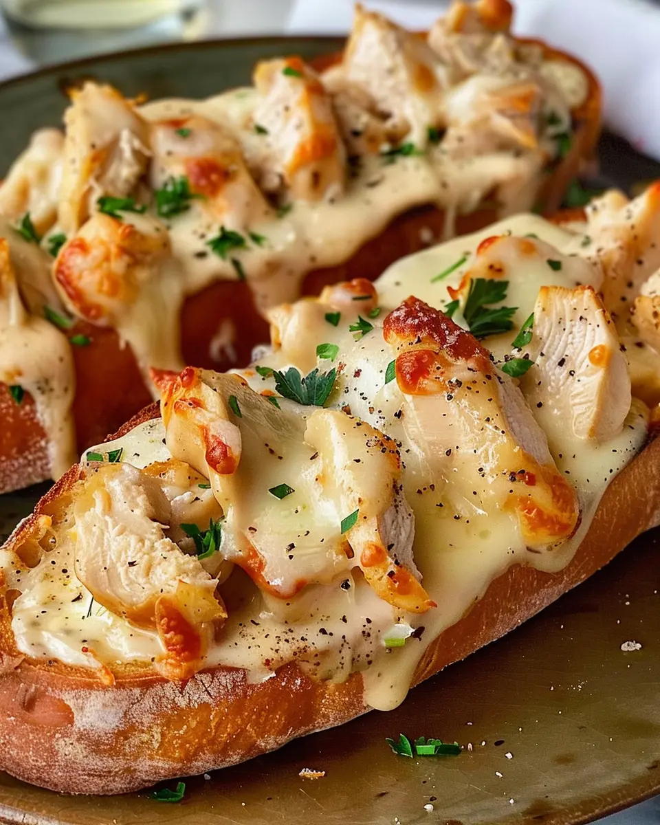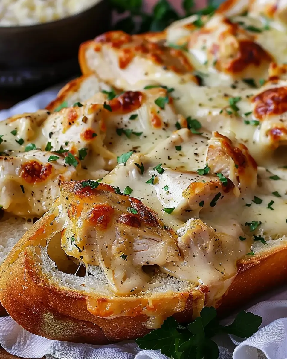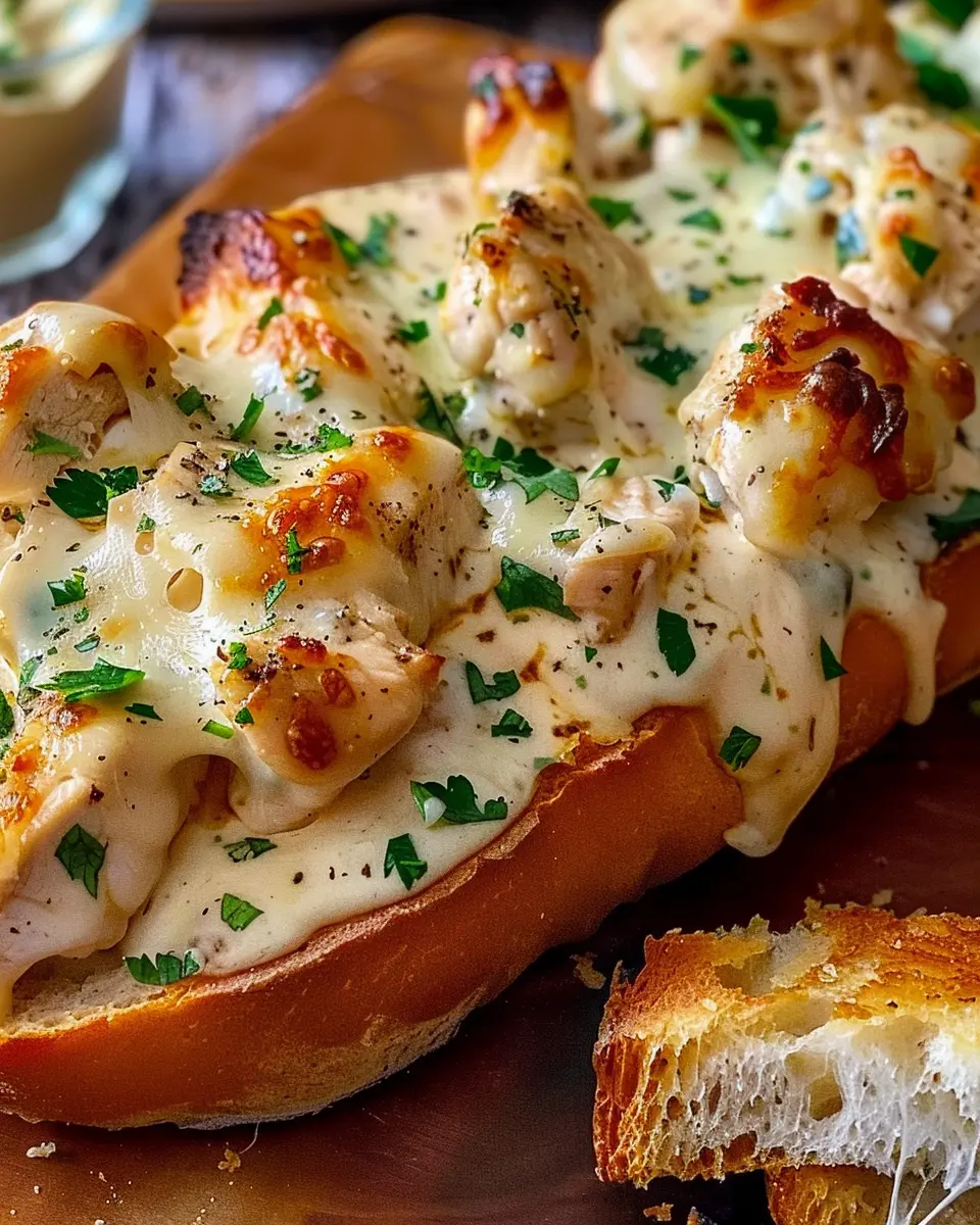 PrintChicken Alfredo Garlic Bread: The Best Comfort Food Delight