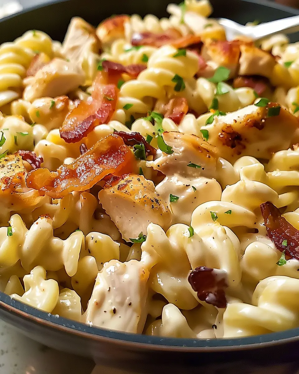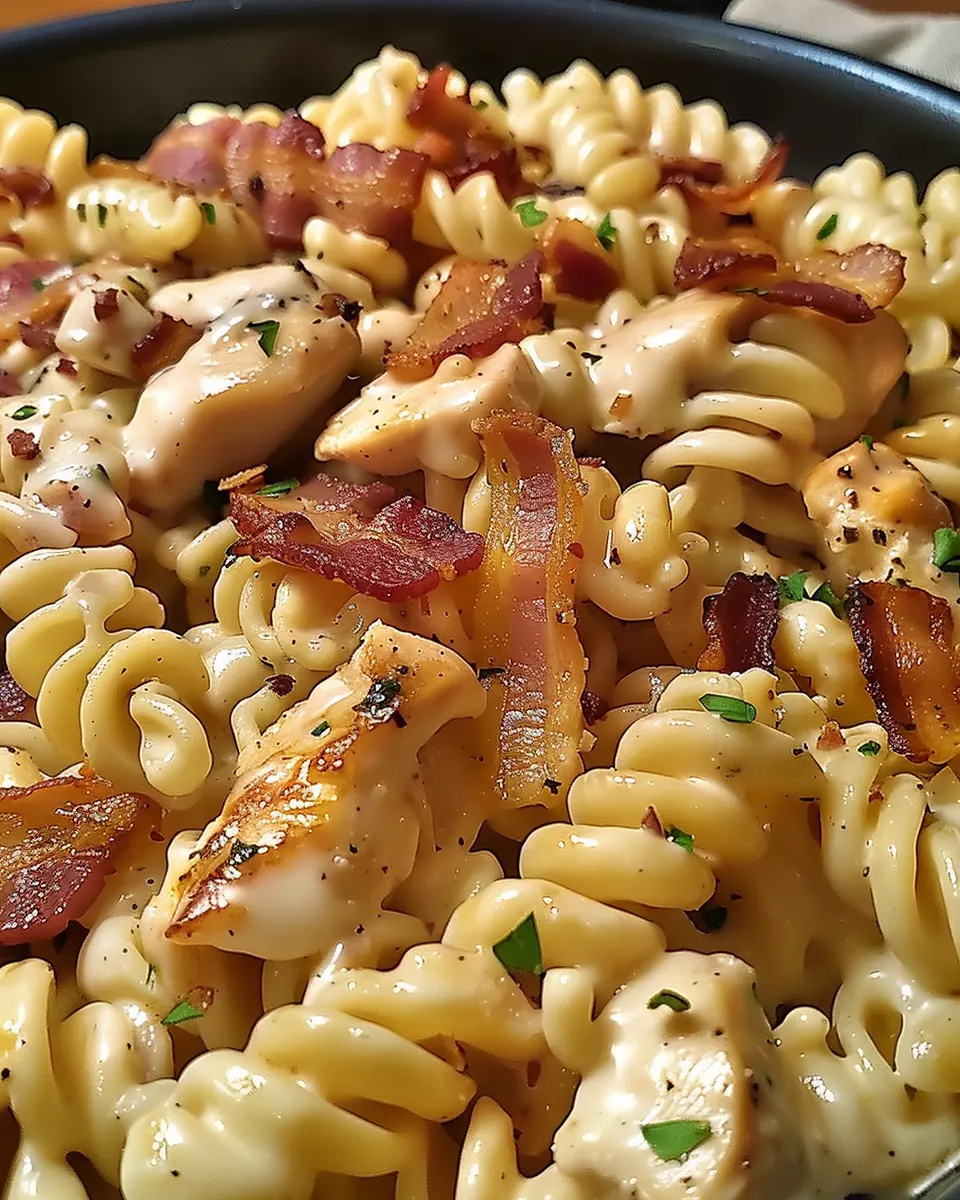 A delicious chicken bacon ranch pasta that is creamy and easy to prepare, perfect for the whole family.