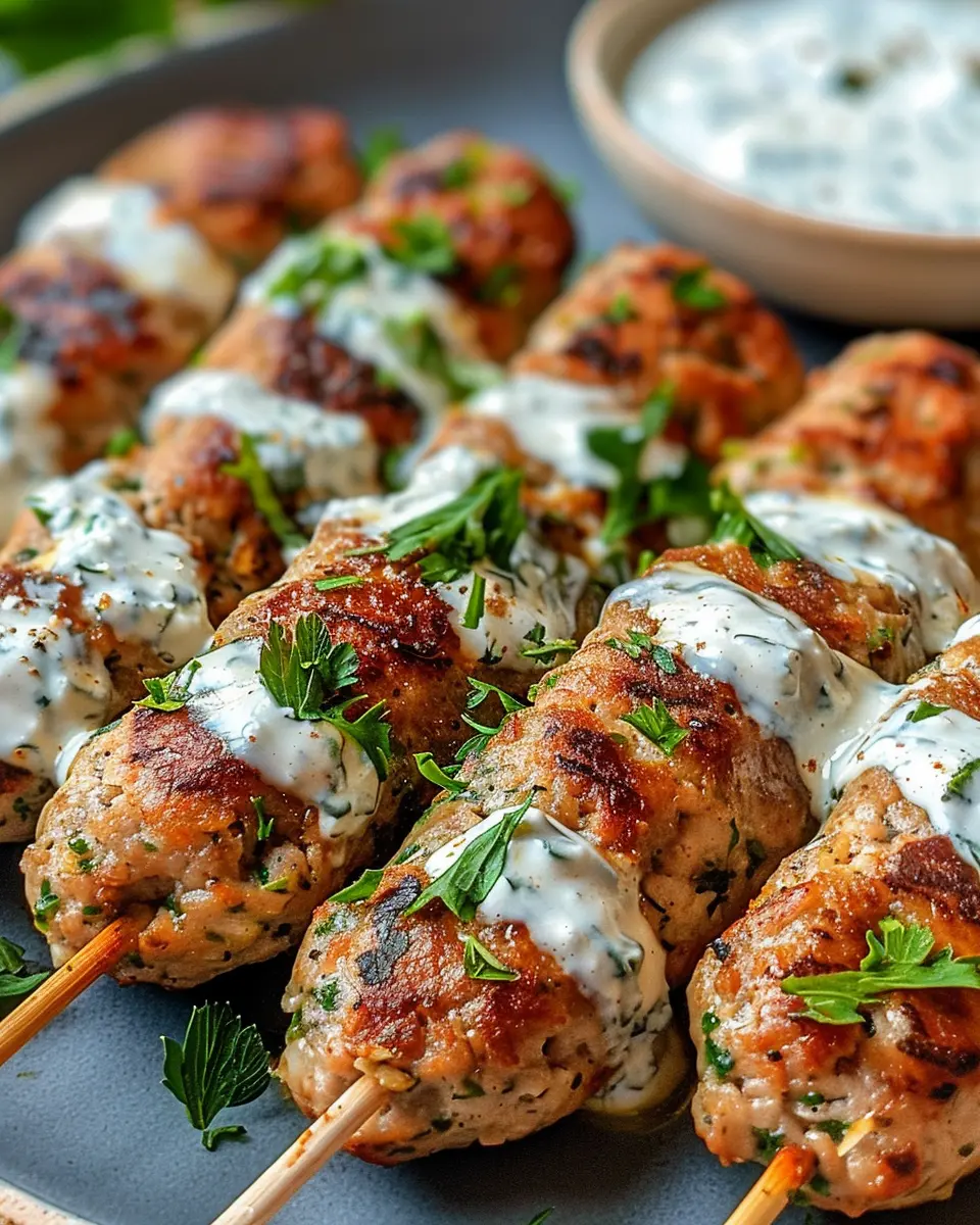Experience the delightful flavors of Chicken Kofta paired with a creamy Garlic Yogurt Sauce, a simple yet exquisite dish!