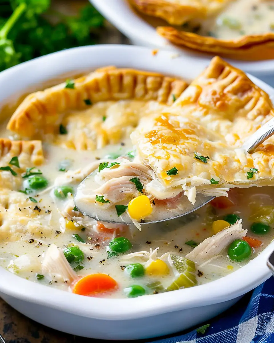 A comforting and hearty Chicken Pot Pie Soup with the added flavor of turkey bacon, perfect for cozy nights.
