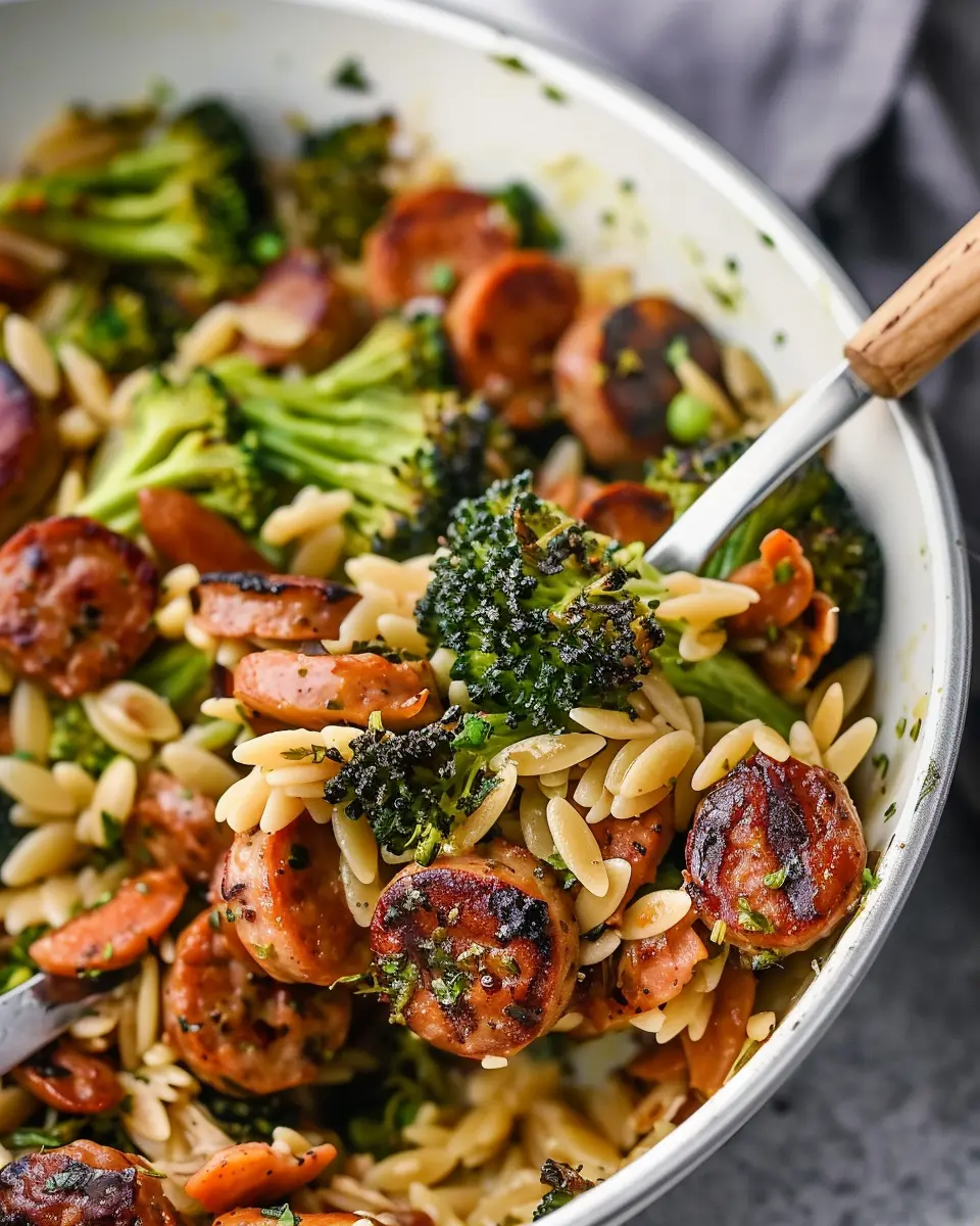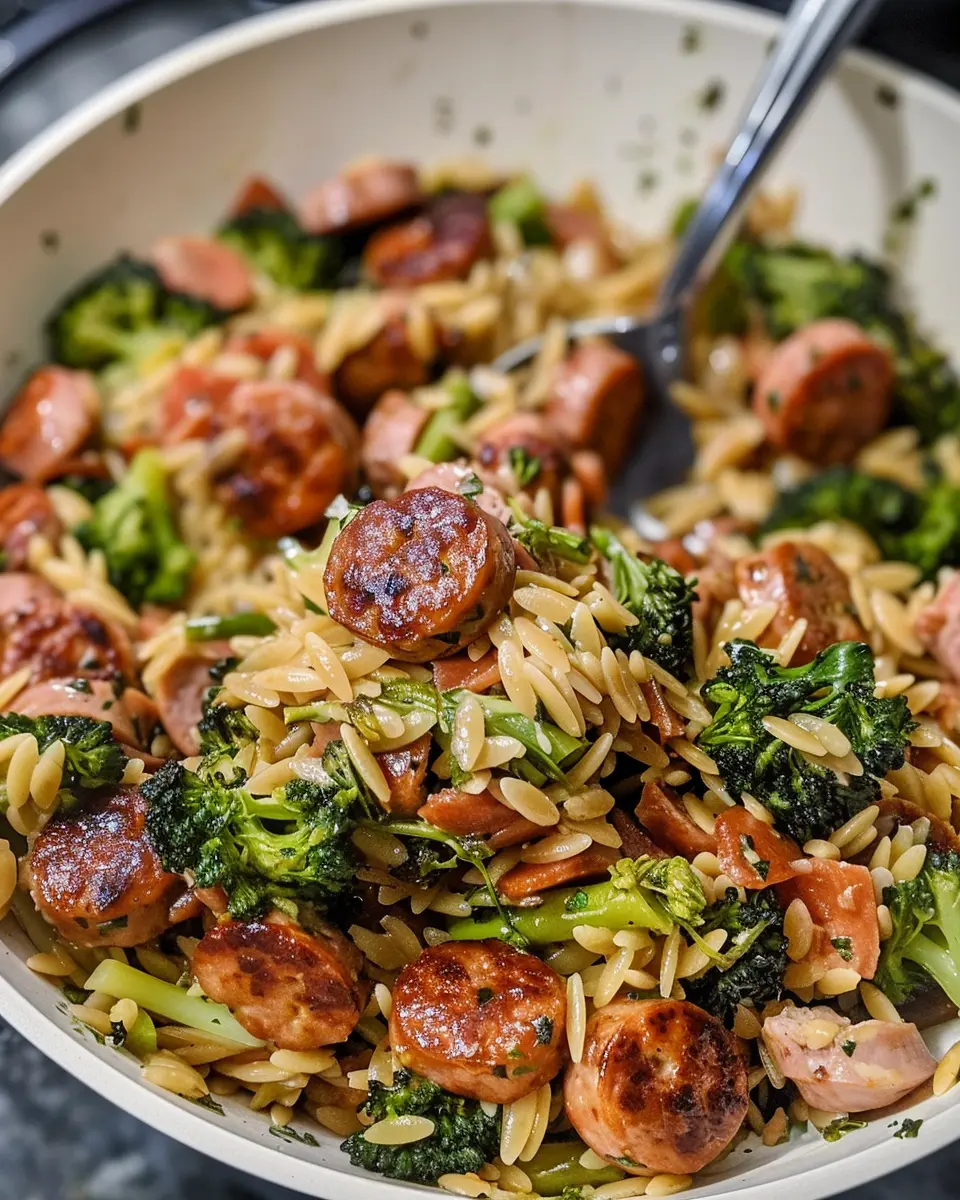PrintChicken Sausage, Broccoli, and Orzo Skillet: Easy One-Pan Delight