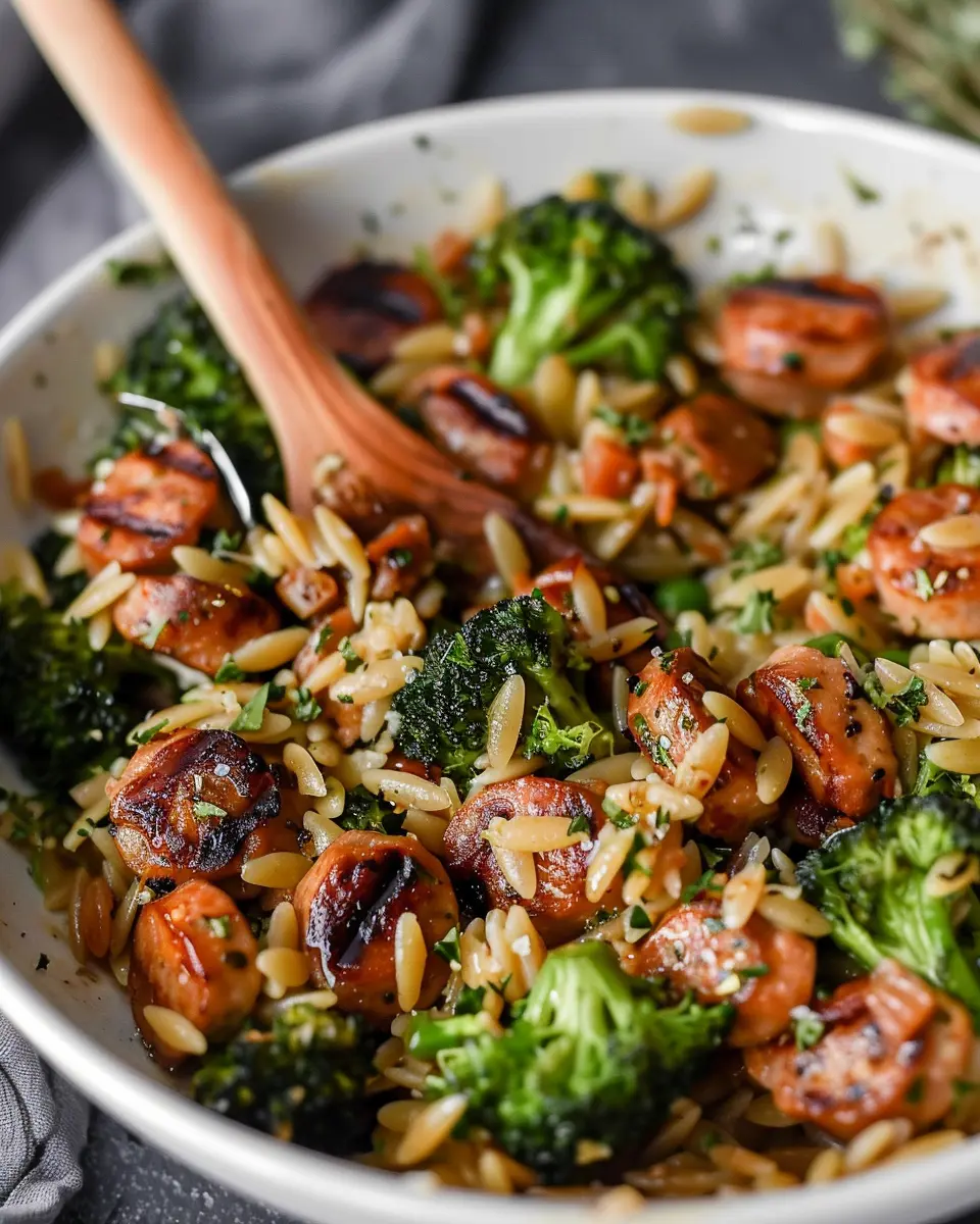 Now, let’s not forget about orzo, a pasta in disguise that adds a delightful chewiness to your dish. It’s superb for soaking up flavors, making it a perfect companion for the savory chicken sausage and the vibrant broccoli. Orzo is high in carbohydrates, making it a great energy source, especially when you’re on the go.