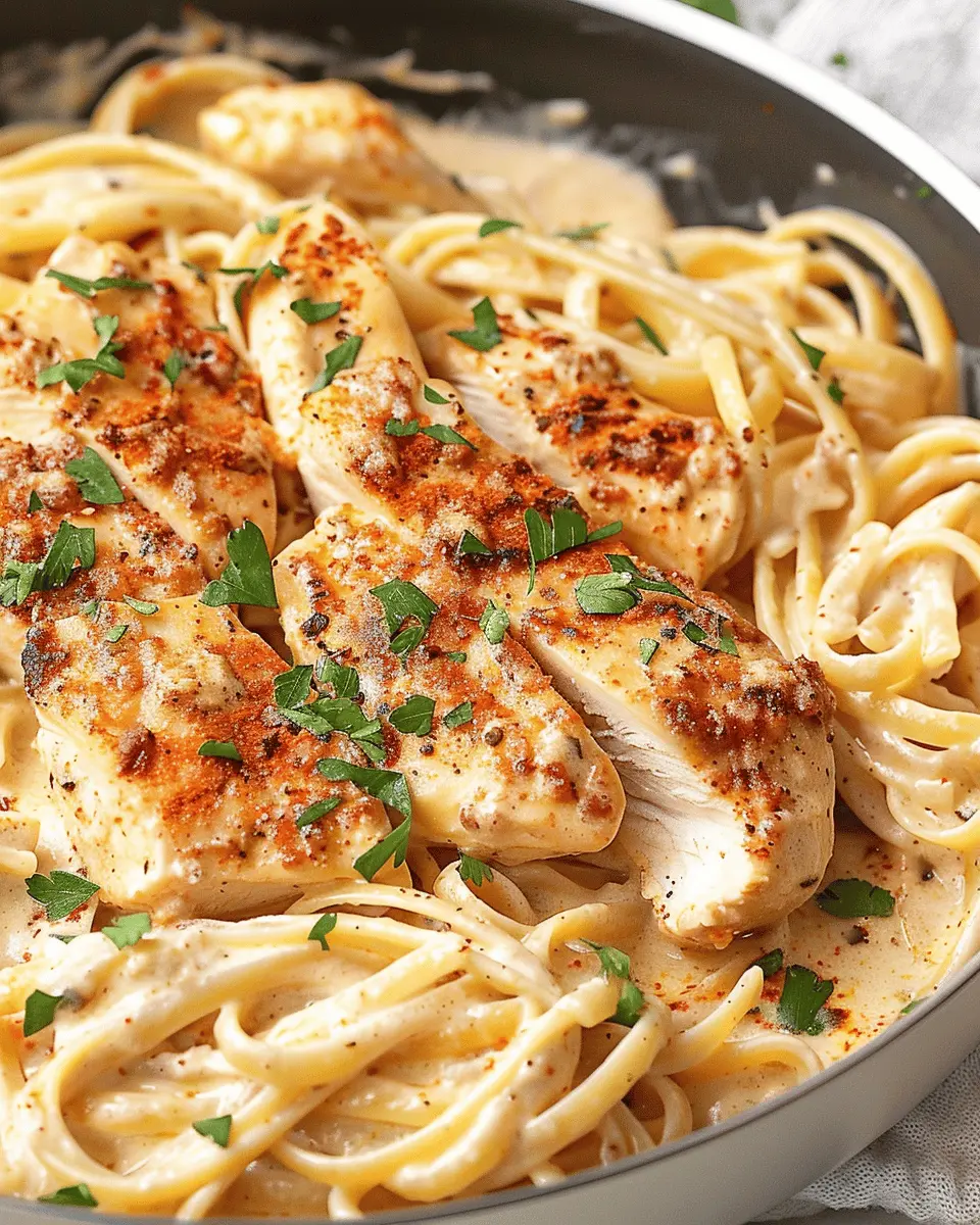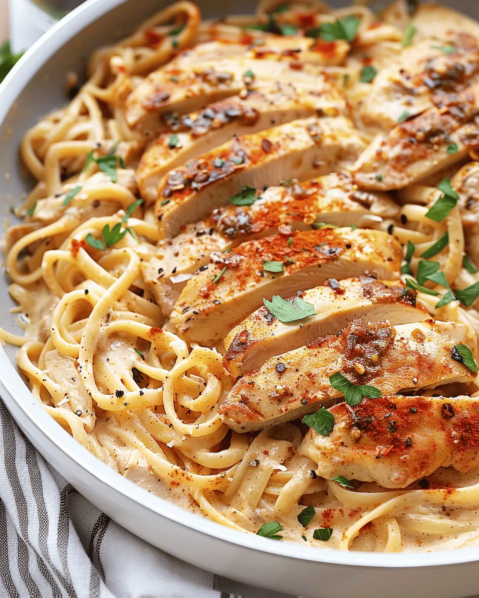 3. Serve: Garnish with chopped parsley and a sprinkle of Parmesan cheese for extra flavor. Your creamy Cajun chicken pasta is now ready to be enjoyed!