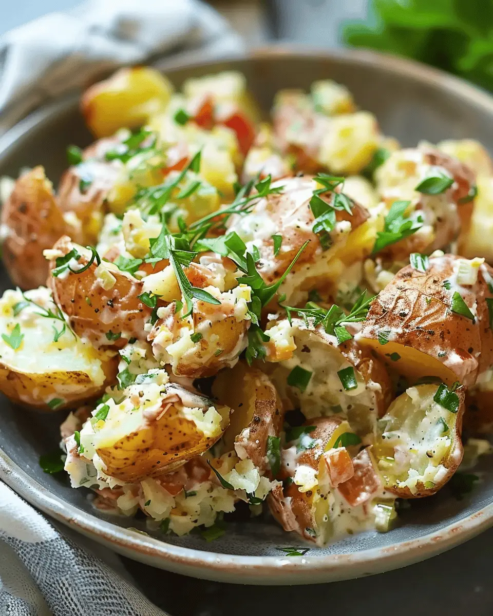 The flavor profile of this dish can be tailored to suit various palates. You can easily add ingredients like fresh herbs, turkey bacon, and chopped chicken ham, which lend robustness to the salad. In fact, the versatility of crispy smashed potato salad has made it a favorite for summer barbecues, potlucks, and even casual family dinners.