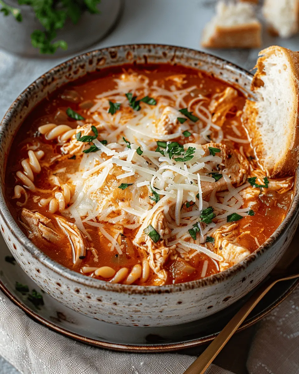 In conclusion, crockpot chicken parmesan soup is the ultimate comfort food, perfect for busy weeknights or when you crave something hearty. This dish brings together tender chicken, rich tomatoes, and melty cheese, creating a delightful blend that warms both the body and soul.