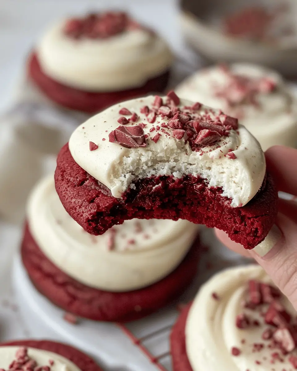 Once your cookies are completely cooled, generously frost them with your cream cheese frosting. You can even sprinkle some chocolate shavings or red velvet crumbs on top for a beautiful presentation. Trust me, your guests will be reaching for another!