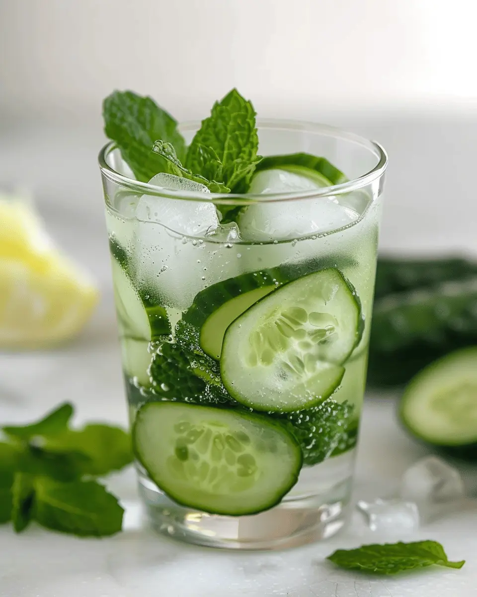But this drink is not just about hydration; it’s also a visual treat. The vibrant green hues of cucumber and mint are appealing, making it perfect for entertaining guests or simply unwinding after a long day. You could even serve it in a beautiful glass to elevate the presentation to Instagram-worthy standards!