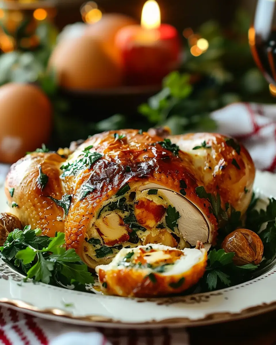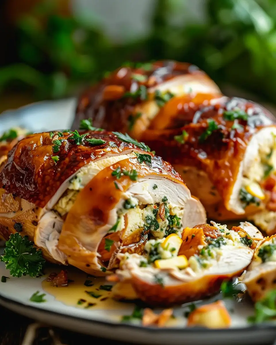 Discover how to make a delicious stuffed chicken recipe with turkey bacon and herbs that even beginners can master!