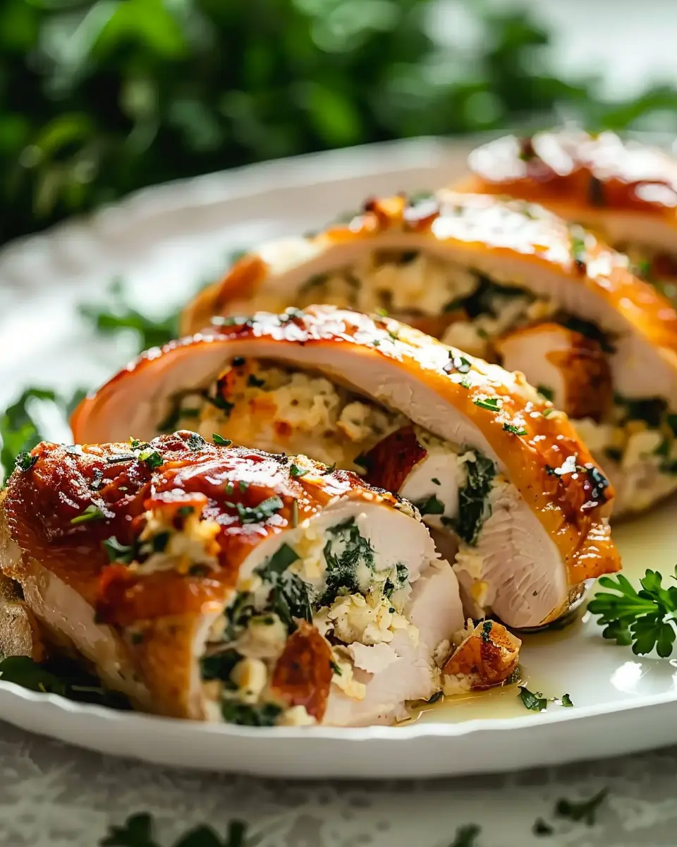 PrintDelicious Stuffed Chicken: Easy Recipe with Turkey Bacon and Herbs