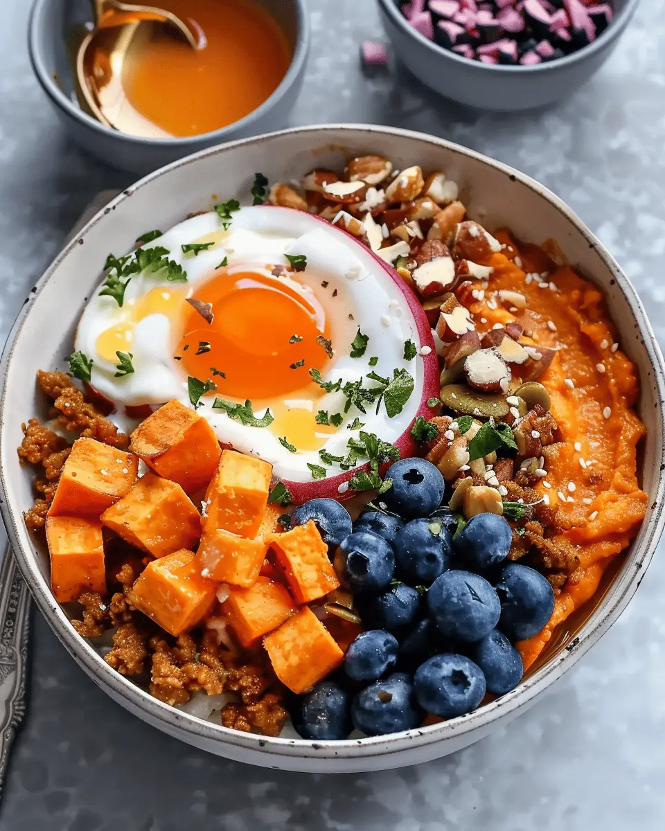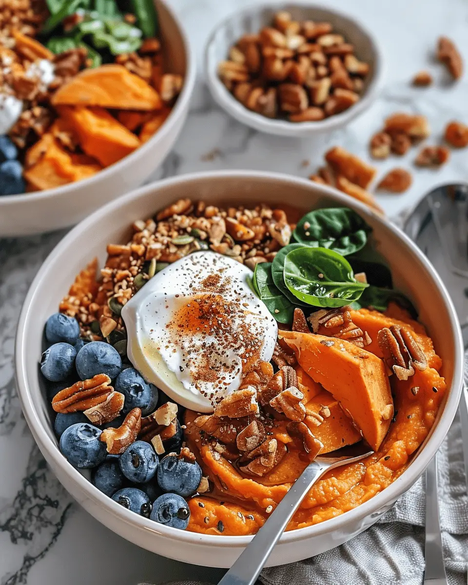 For those who prefer a heartier, savory option, a Delicious Sweet Potato Breakfast Bowl can be transformed easily. Here’s a quick guide: