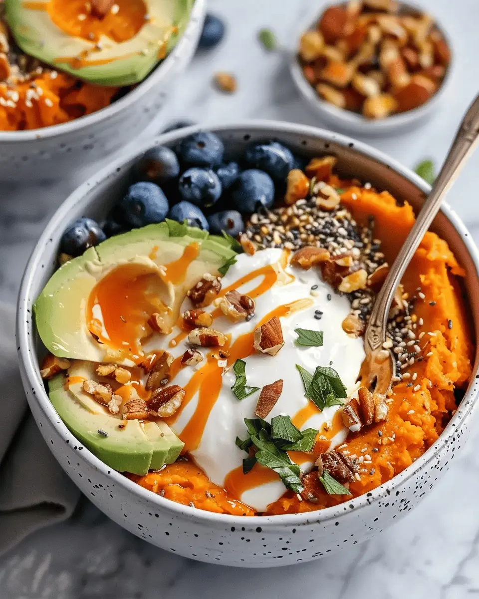 Toppings can elevate your Delicious Sweet Potato Breakfast Bowl to new heights. Here are some tasty options to consider: