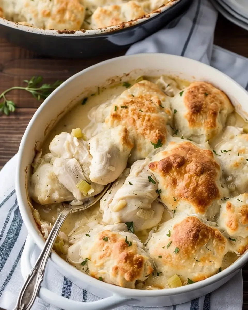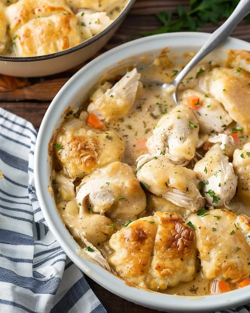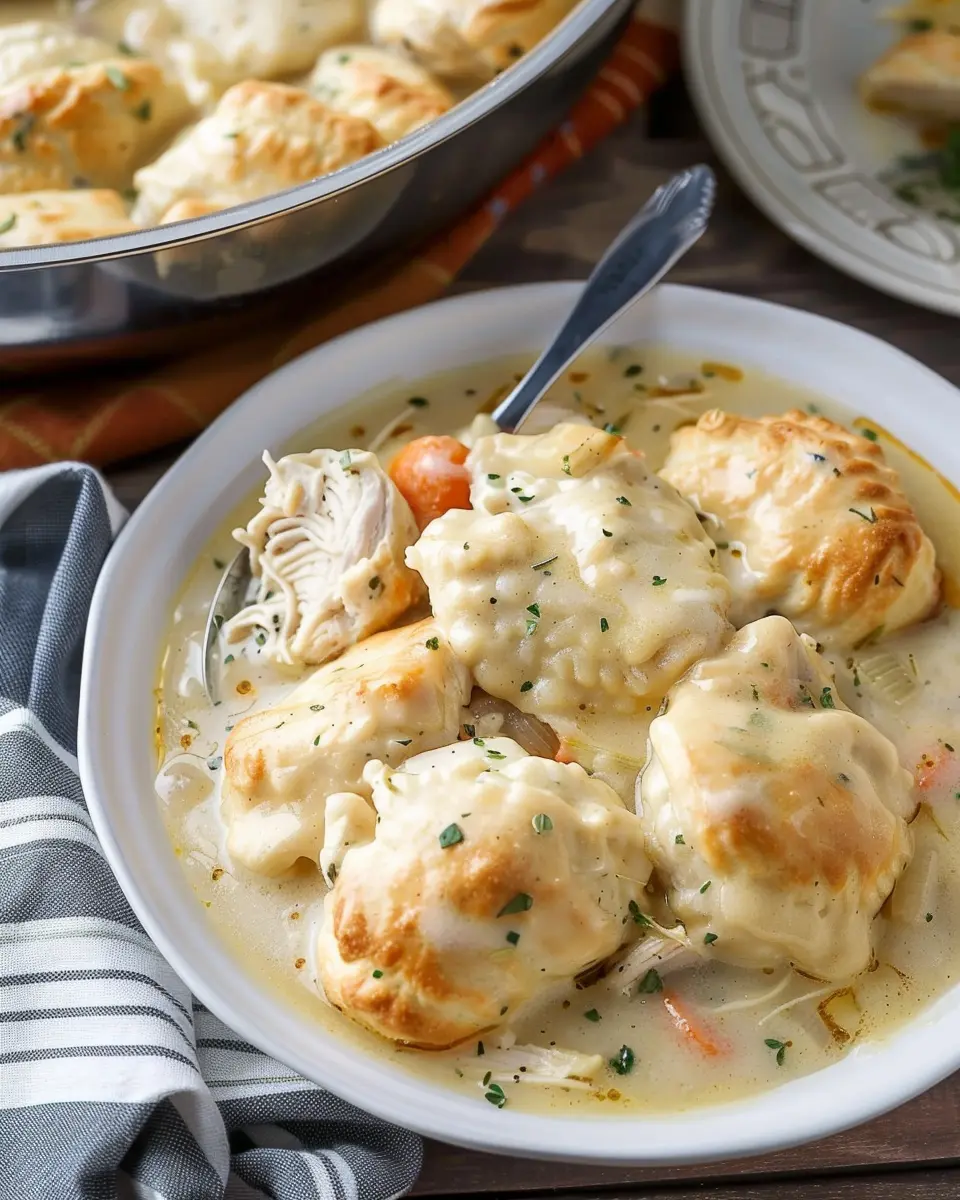 Enjoy a deliciously easy recipe for chicken and dumplings featuring fluffy biscuits that are perfect for cozy nights.