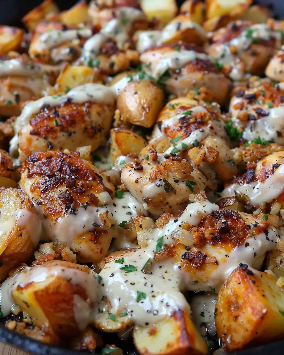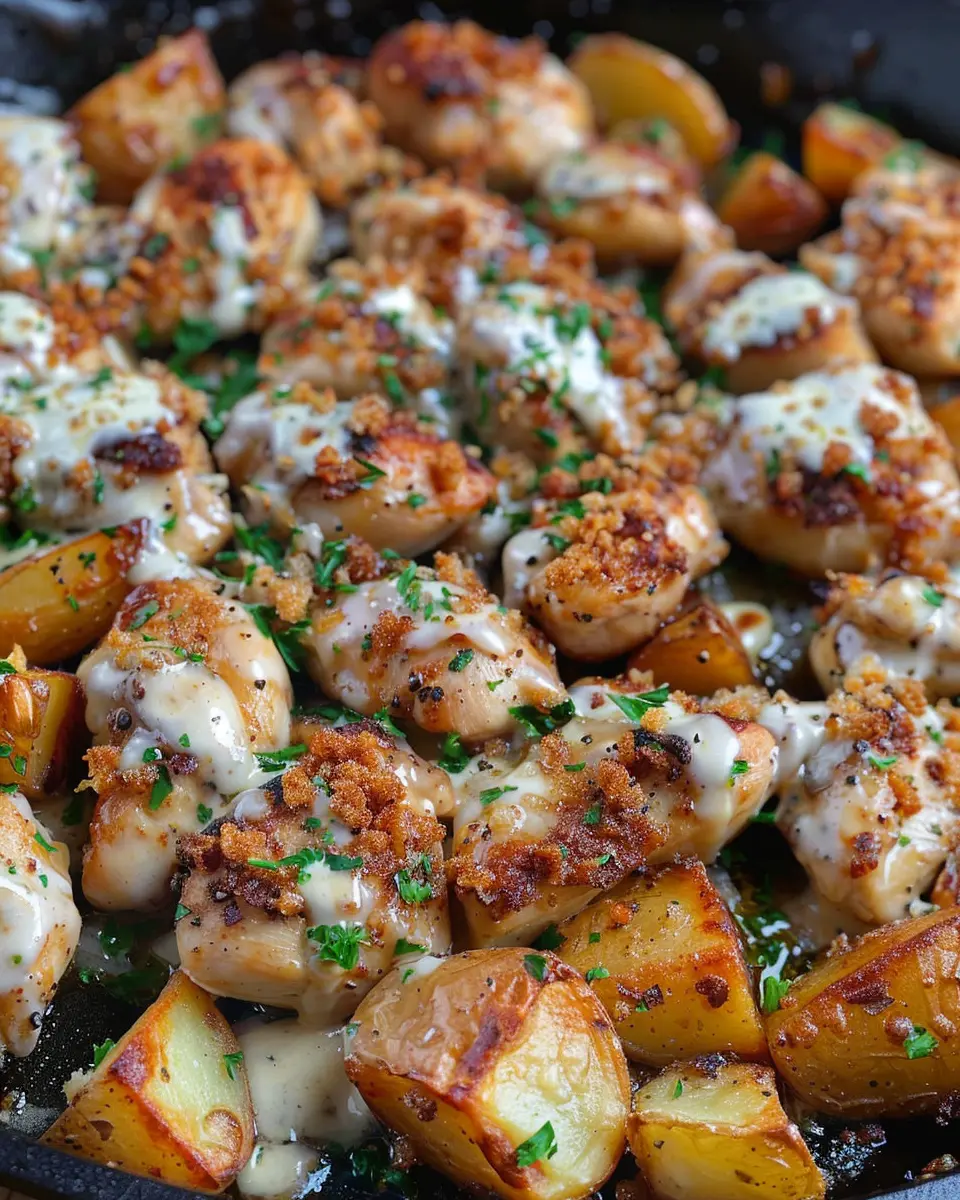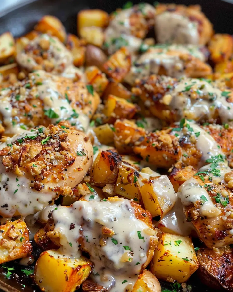 In conclusion, Garlic Parmesan Chicken and Potatoes is a delightful dish that brings comfort and flavor straight to your dinner table. Its crispy skin and creamy garlic sauce beautifully complement the tender potatoes, making it a crowd-pleaser for any occasion. Whether you’re hosting friends or enjoying a quiet night in, this recipe is an excellent choice.