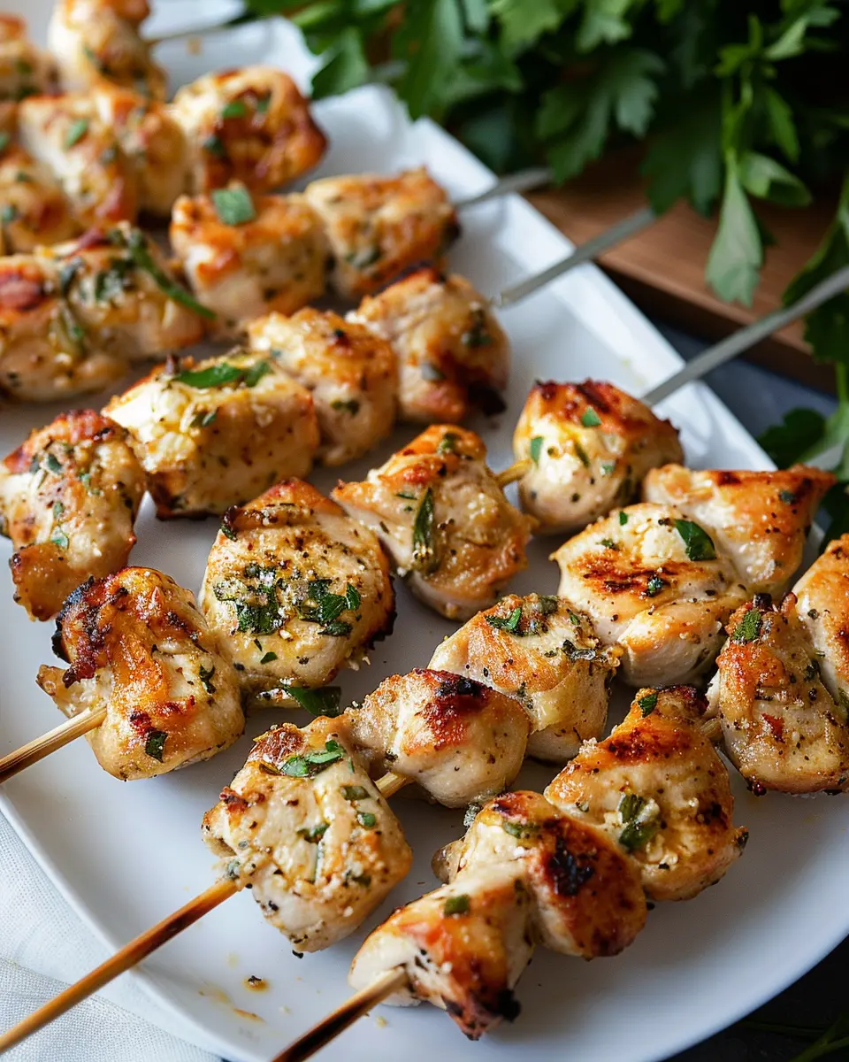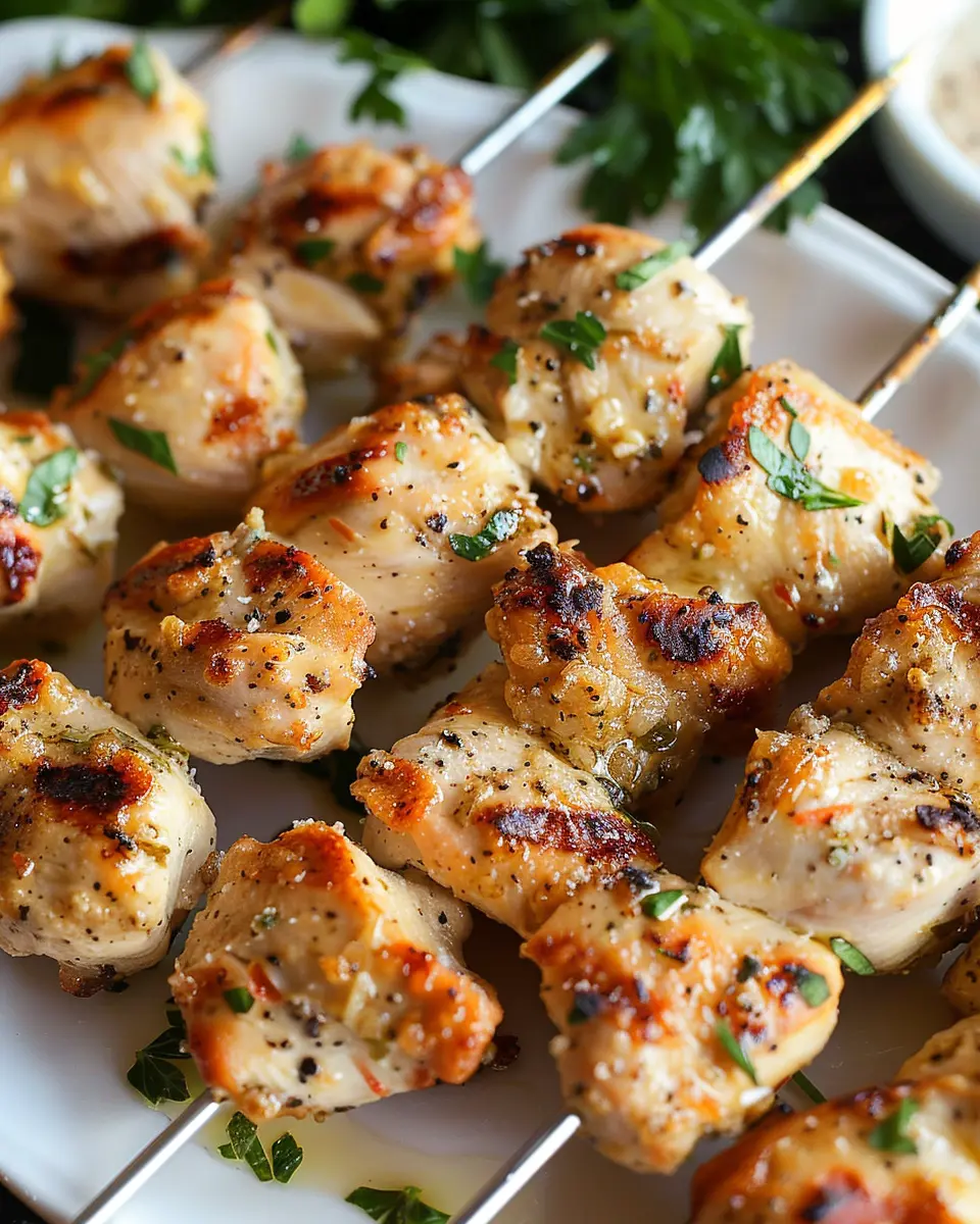 PrintGarlic Parmesan Chicken Skewers: Juicy Grilled Delight at Home