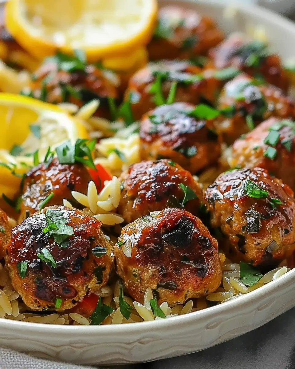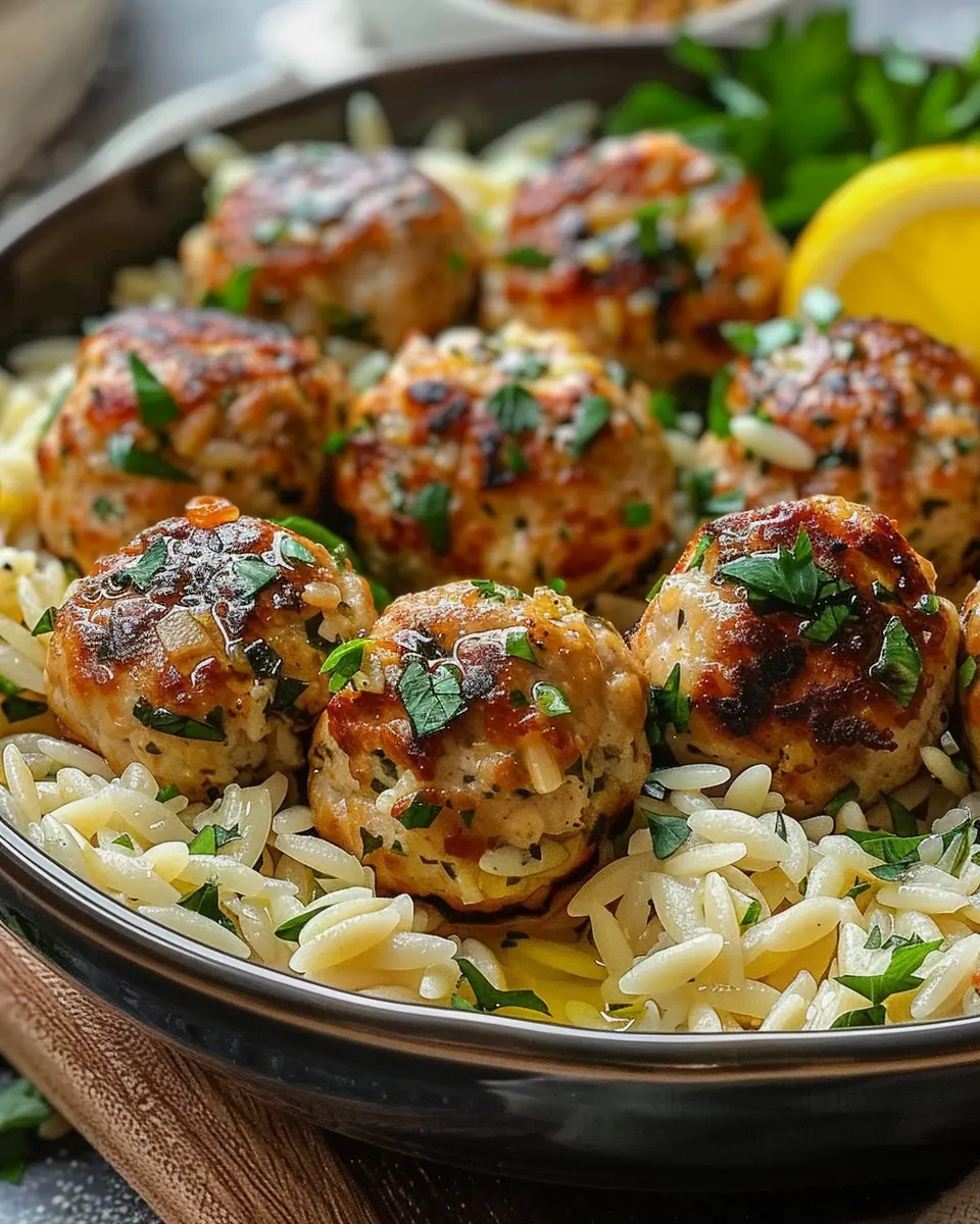 PrintGreek Chicken Meatballs with Lemon Orzo: A Juicy Family Favorite
