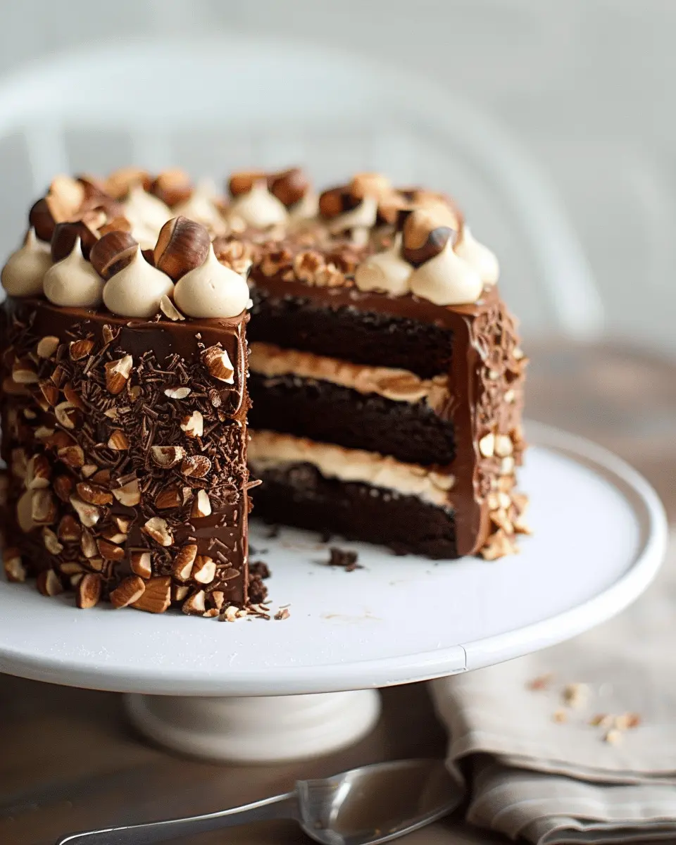 This Hazelnut and Chocolate Layer Cake is the ultimate indulgence for chocolate lovers.