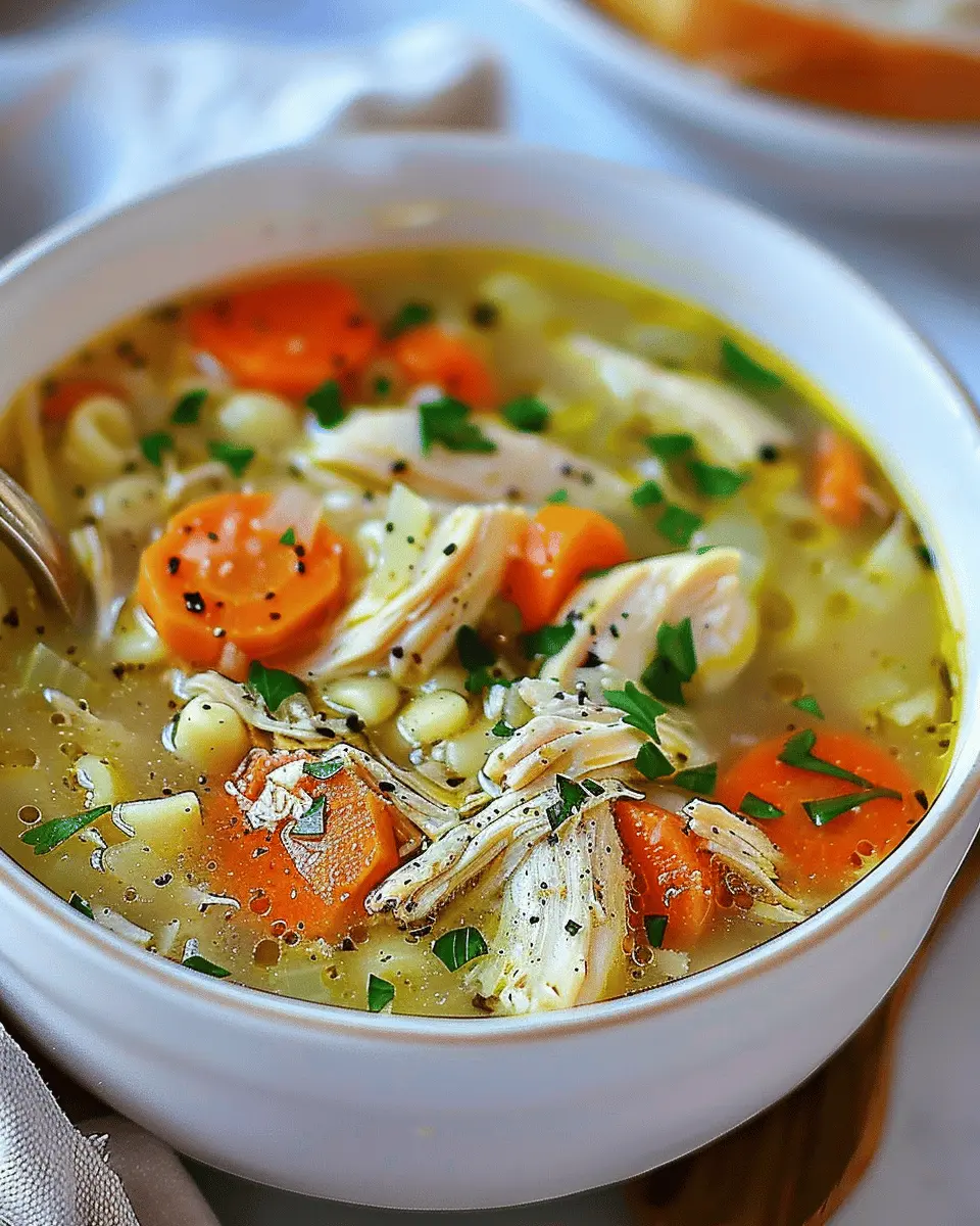 An invigorating chicken soup recipe designed to promote wellness and healing.
