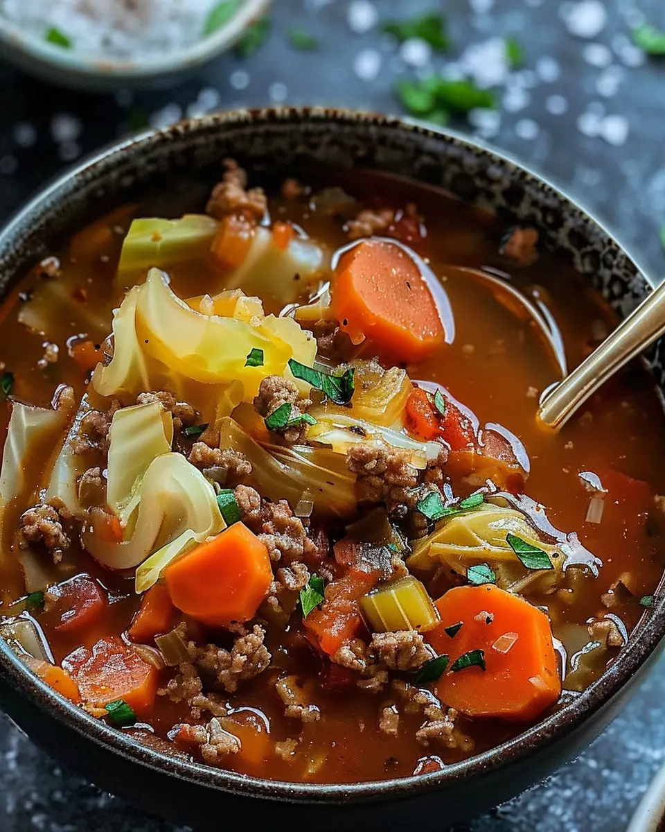 Keywords: Hearty Cabbage Soup, Ground Beef, Comfort Food