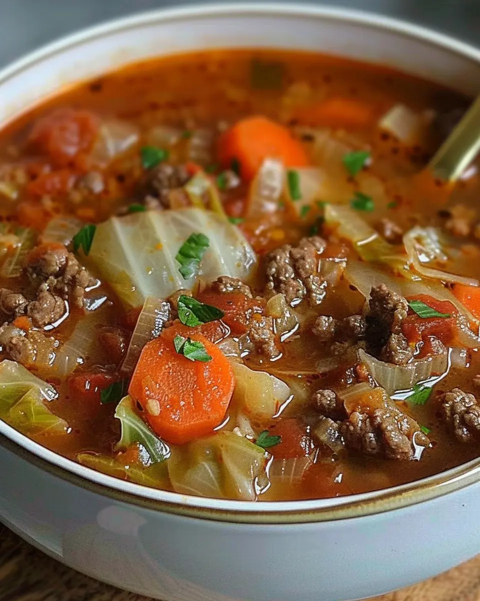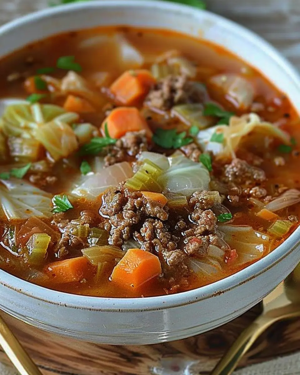 Keywords: Hearty Ground Beef and Savory Cabbage Soup