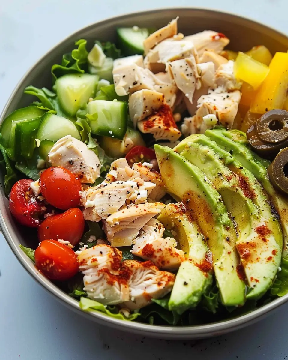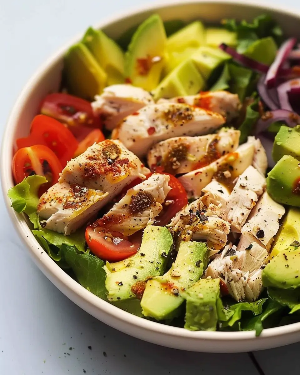When assembling your salad, layer ingredients thoughtfully. Start with lettuce or spinach, followed by chicken, then avocado. This helps keep everything fresh and prevents sogginess.