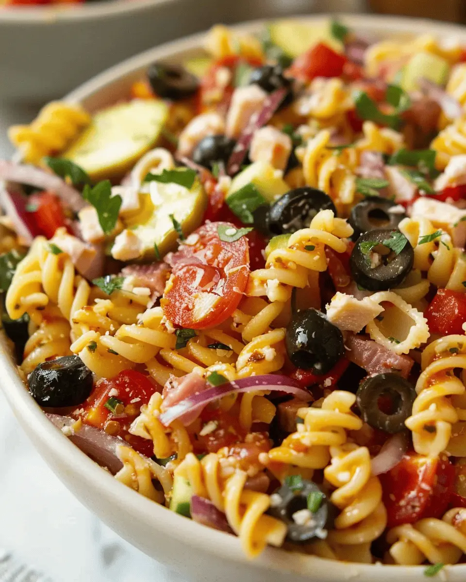 Absolutely! One of the best aspects of the Italian Sub Pasta Salad is its versatility. If you’re not a fan of Turkey Bacon or Chicken Ham, feel free to swap them out for your favorite deli meats. You can also try adding salami or even veggie alternatives for a vegetarian option. Don’t hesitate to mix different types of pasta, such as rotini or penne, depending on what you have on hand. Just remember to balance flavors—if you go for a spicier meat, you might want to pair it with milder cheeses.