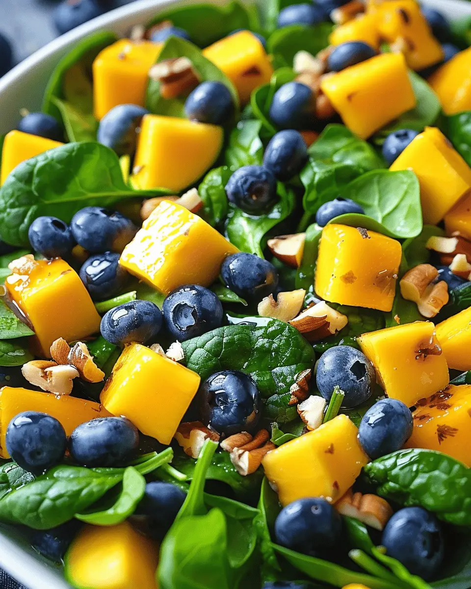 When making your Mango Salad with Spinach and Blueberries, the quality of your ingredients truly makes a difference. Visit your local farmers’ market or a reputable grocery store to find the ripest mangoes and freshest spinach. Look for mangoes that give slightly to the touch, indicating ripeness, and vibrant, crisp spinach leaves. According to the USDA, fresh produce not only tastes better but also retains more nutrients.
