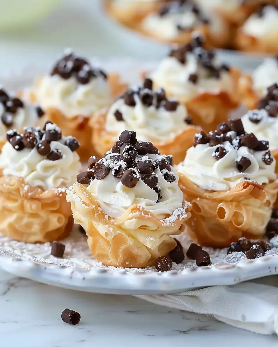 In wrapping up, it’s clear that mini cannoli cups are not just visually appealing; they also deliver delightful bursts of flavor in every bite. These bite-sized confections are perfect for gatherings or as a treat for yourself after a long day. Imagine indulging in crispy shells filled with smooth, creamy ricotta and a hint of chocolate. They truly capture the essence of traditional cannoli while being incredibly fun to eat.