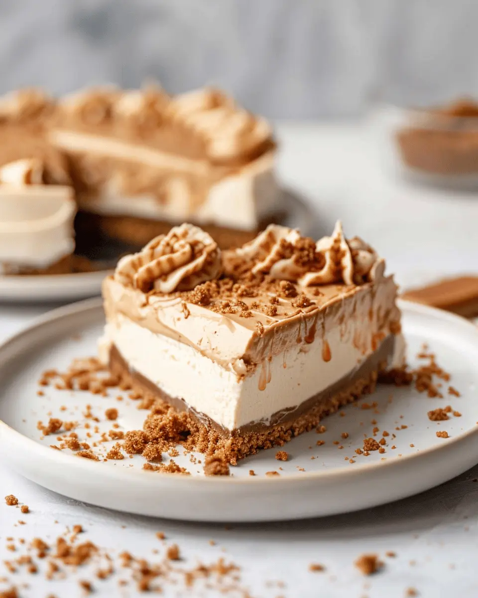 For a little extra flair, you can swirl in some additional Biscoff spread on top before chilling. Just drop spoonfuls of the spread and use a knife to create swirls.