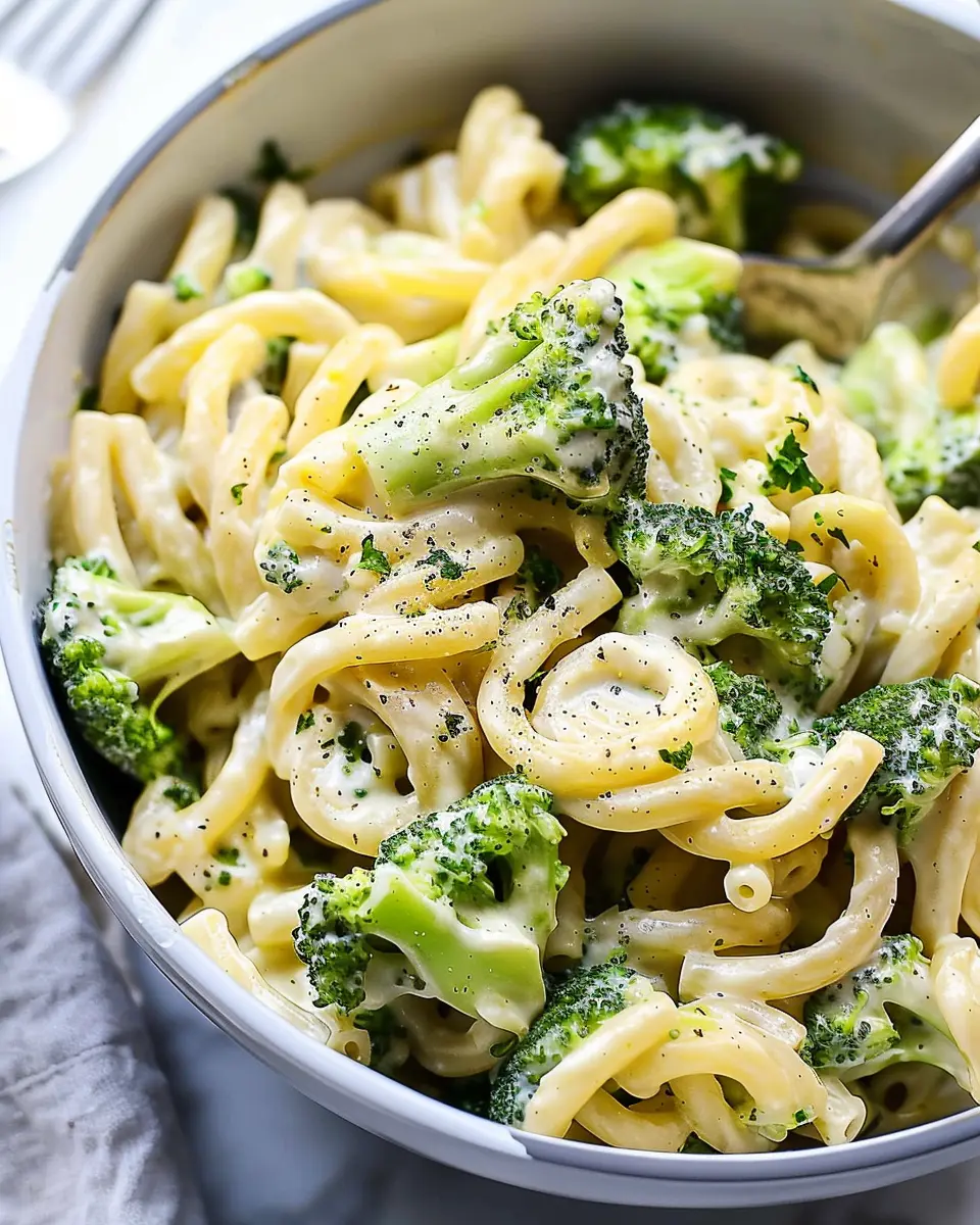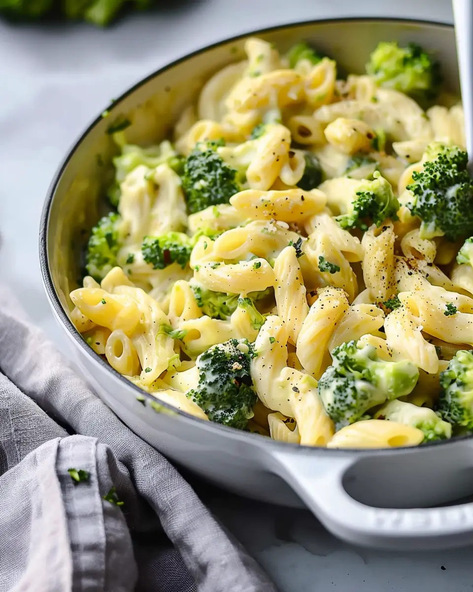 Broccoli Timing: Add broccoli florets halfway through the cooking process. This preserves their bright green color and crunch, adding an appealing contrast to the creamy sauce.