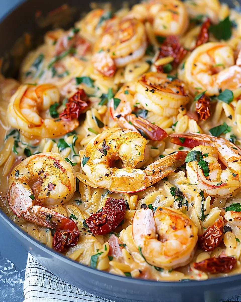 PrintPrawn Orzo with Sun-Dried Tomatoes: A Deliciously Easy Dish