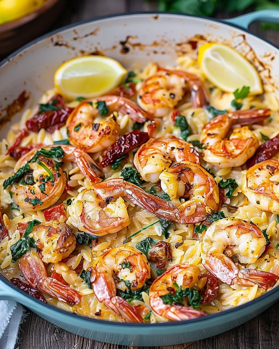 A delightful and simple recipe for Prawn Orzo that combines shrimp and sun-dried tomatoes.
