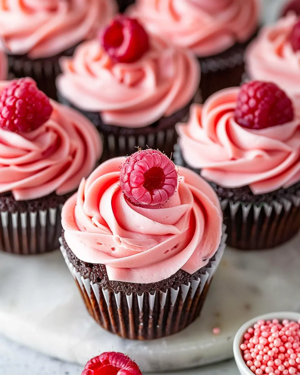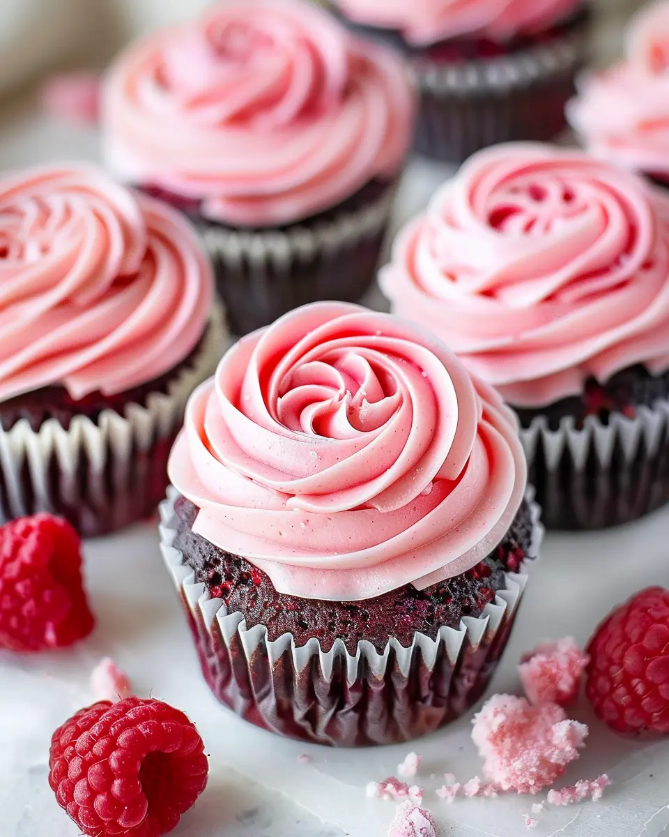 A delightful recipe for raspberry cupcakes topped with creamy buttercream frosting, perfect for any occasion.