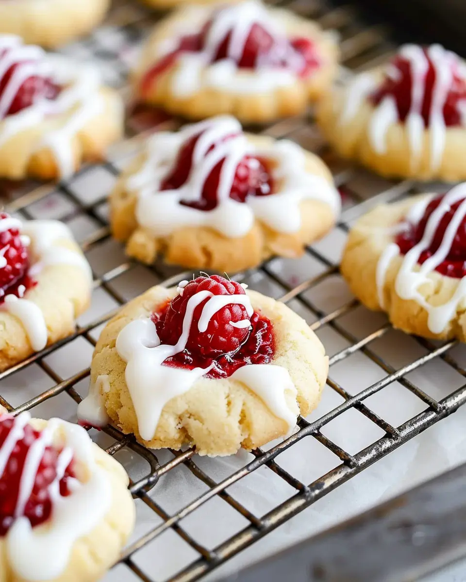 After baking, allow your raspberry thumbprint cookies to cool for about 10-15 minutes on a wire rack. This step is crucial, as it helps the centers set properly and makes them easier to ice.